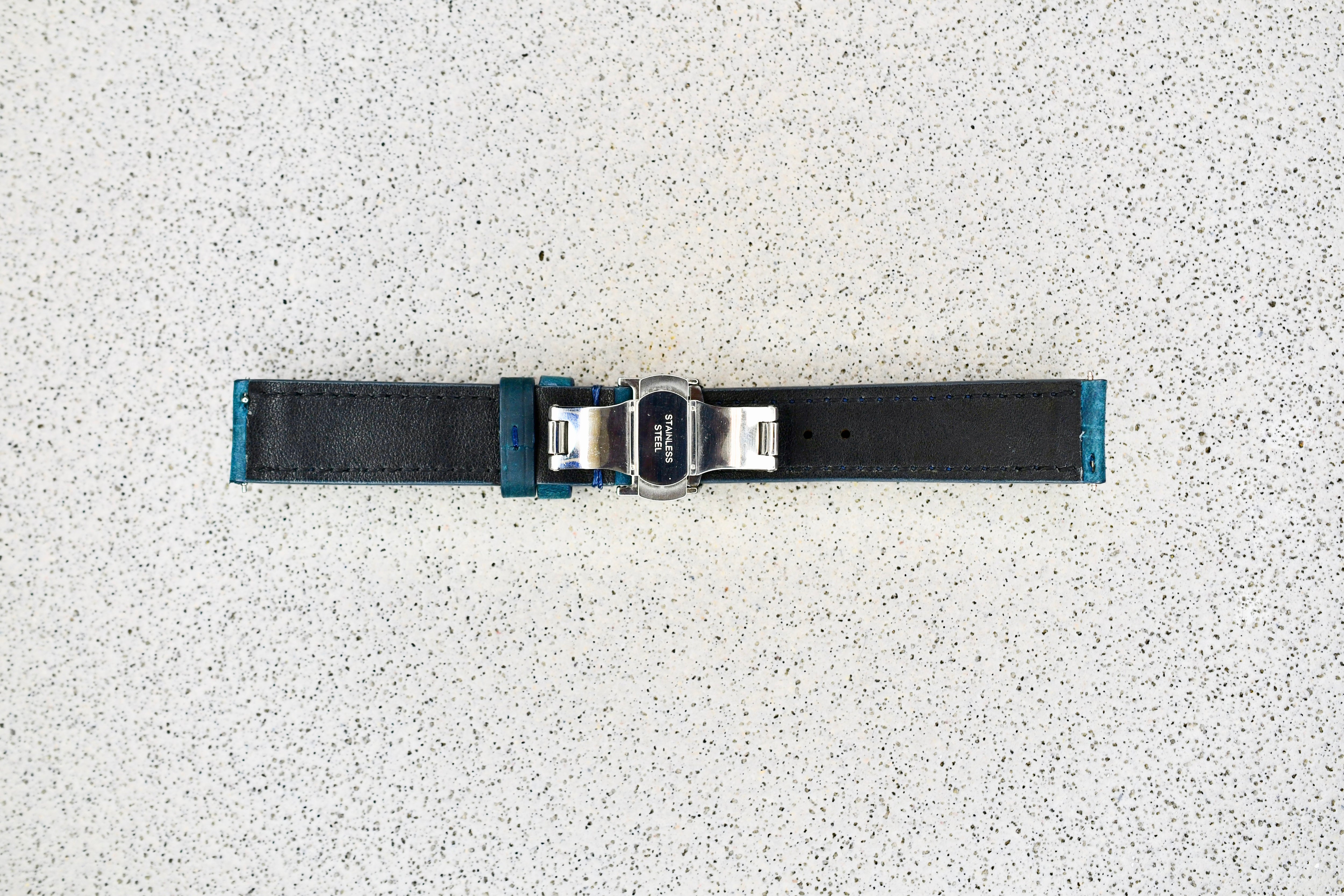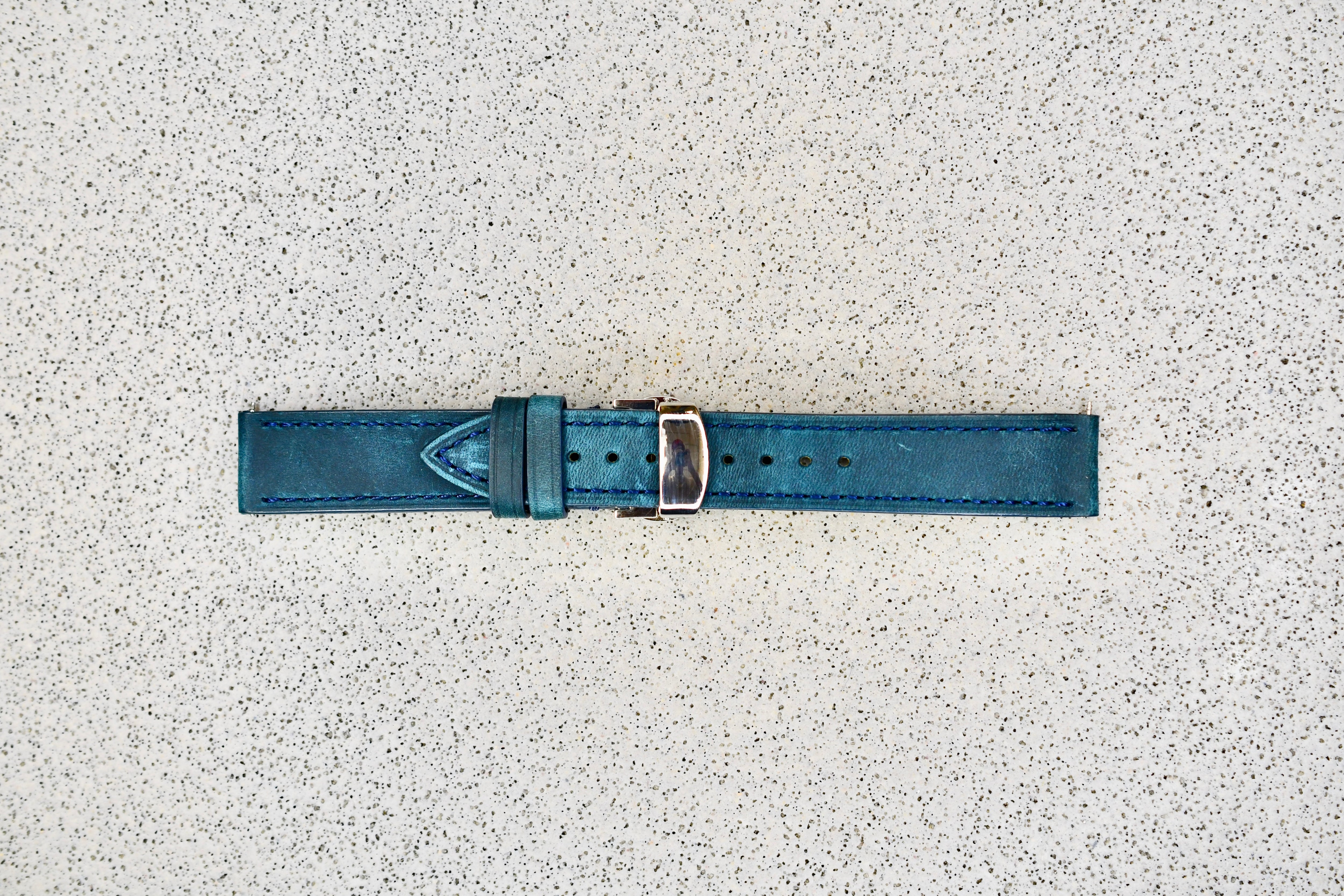 Green Leather Strap w. Silver Clasp, 18mm