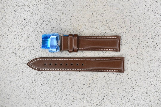 Brown Calf Skin Leather Strap + Silver Clasp, 20mm