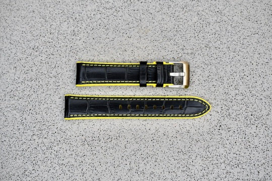 Black & Yellow "Leather" Rubber Strap, 20mm
