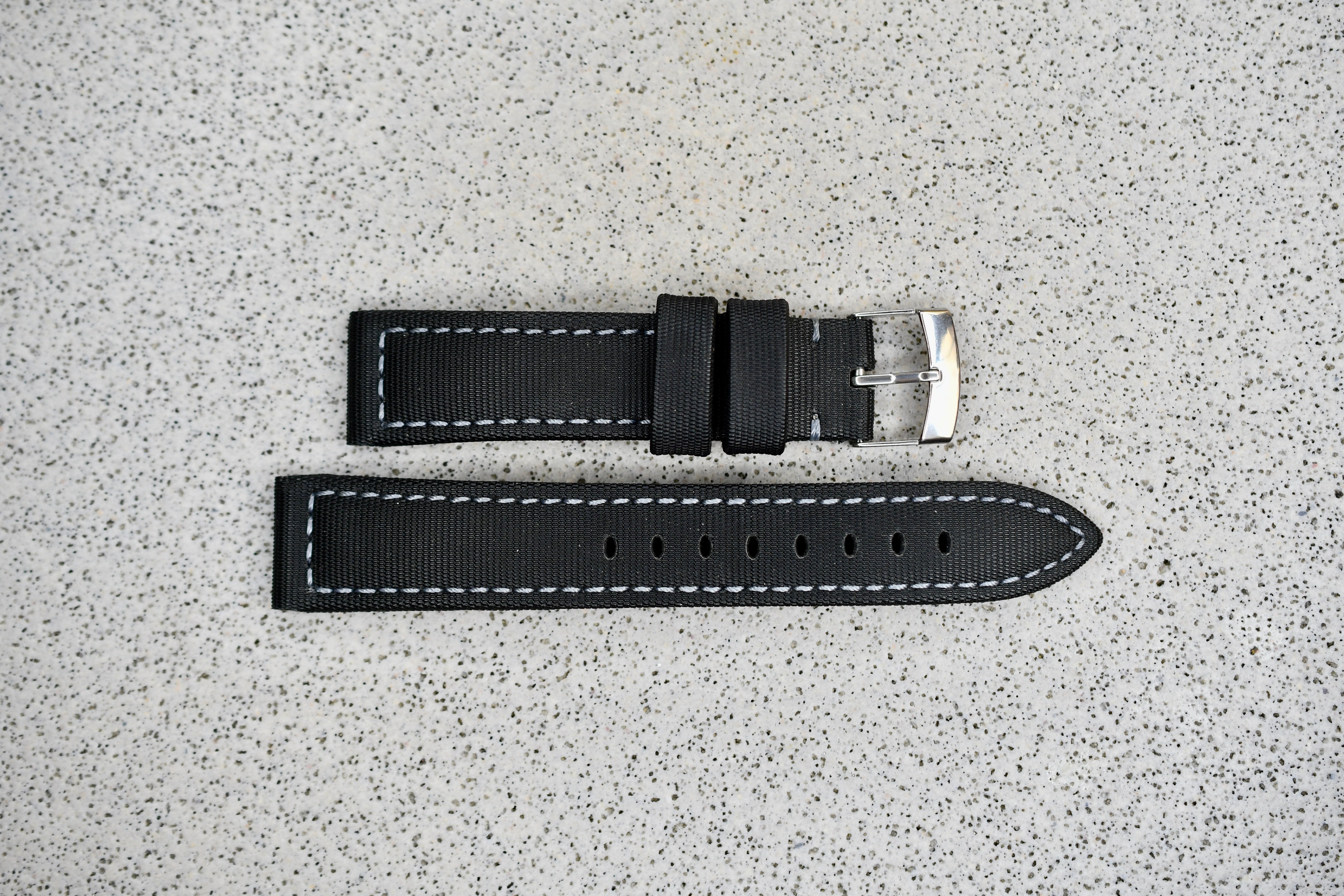 Black Rubber Rally Strap + White Stitching, 20mm