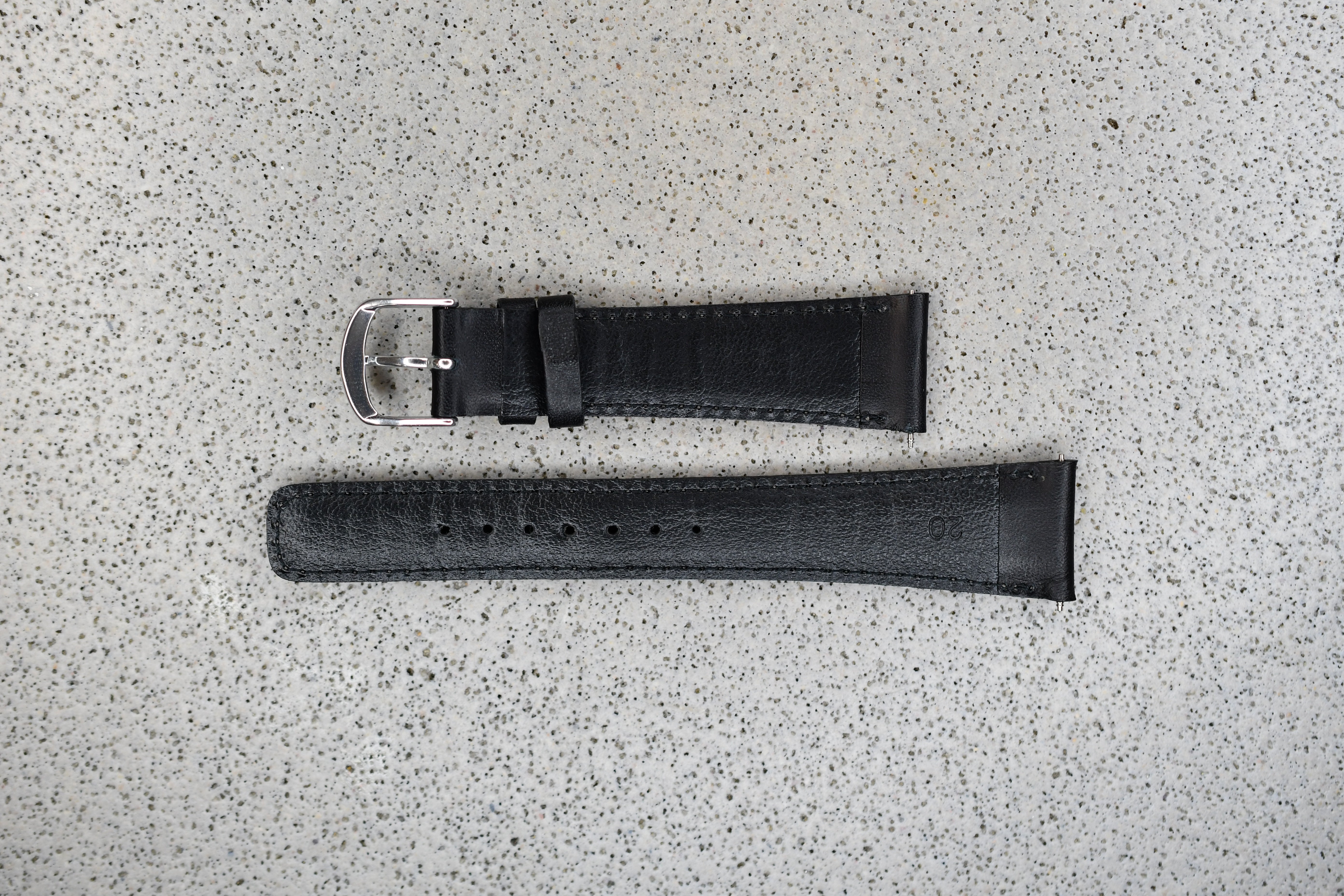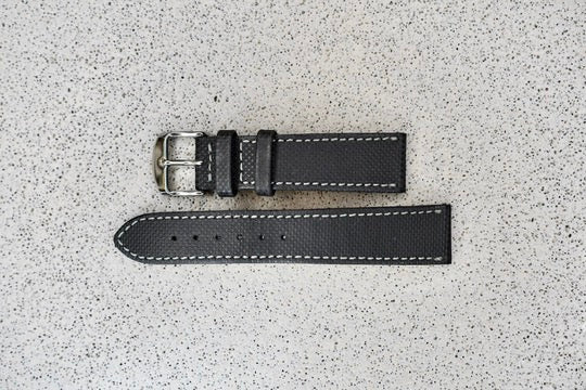 Black Leather Strap + Grey Stitching, 20mm - New