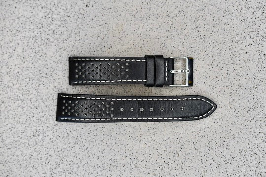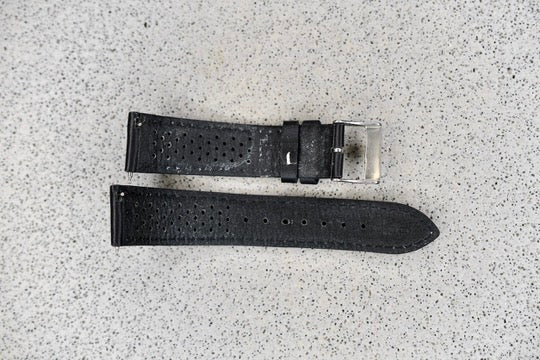 Black Perforated Leather Strap, 20mm