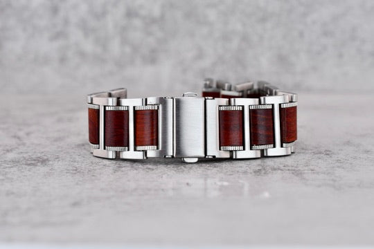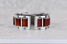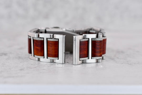 Brushed Silver + Red Bamboo Bracelet - Straight Endlinks