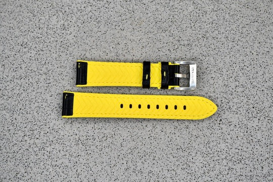 Black & Yellow "Leather" Rubber Strap, 20mm