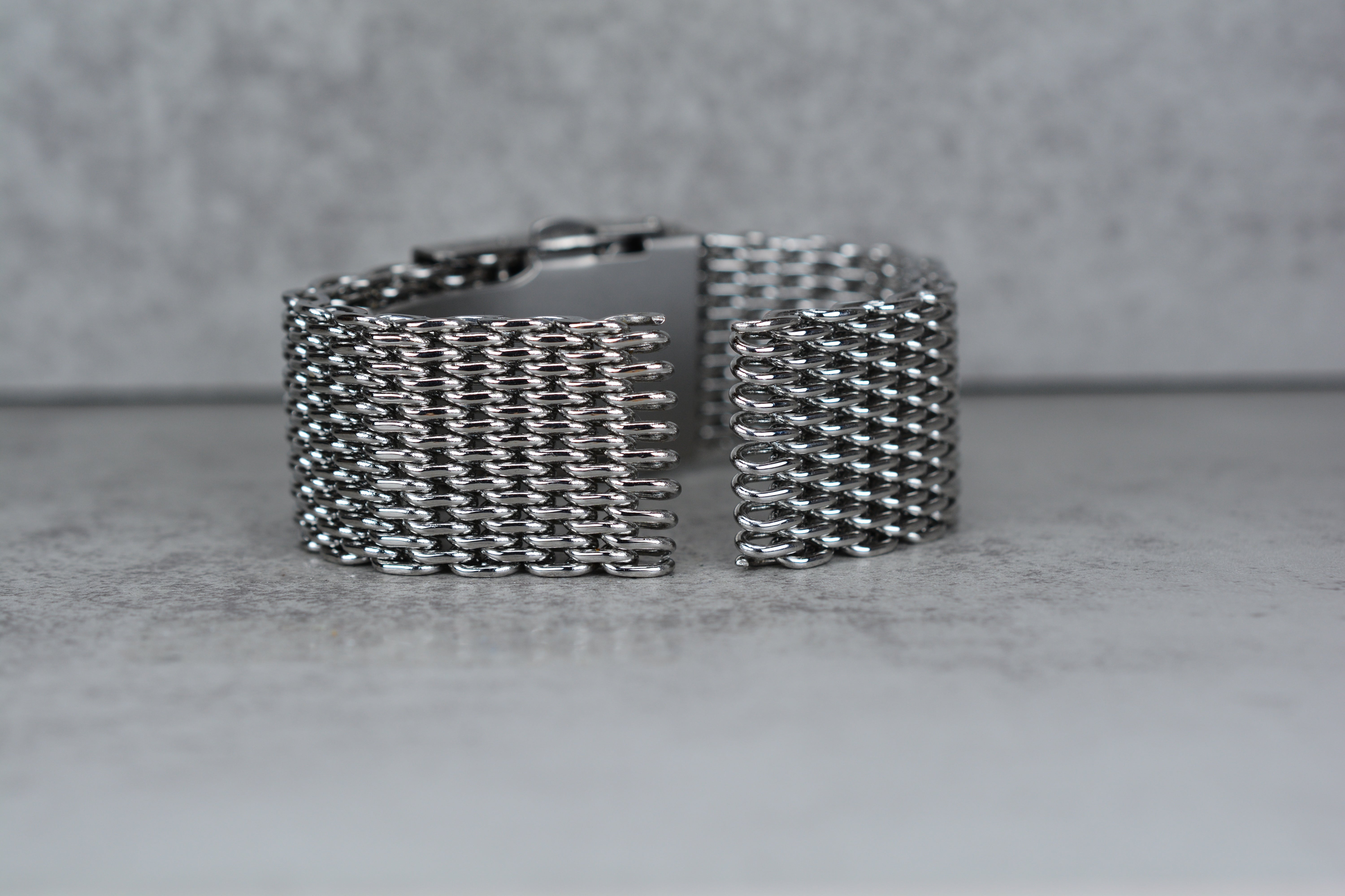 Polished Silver Mesh Bracelet w. Stright Endlinks, 22mm