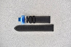 Black Calfskin Leather Strap w. Brown Stitchin + Butterfly Clasp, 22mm - New