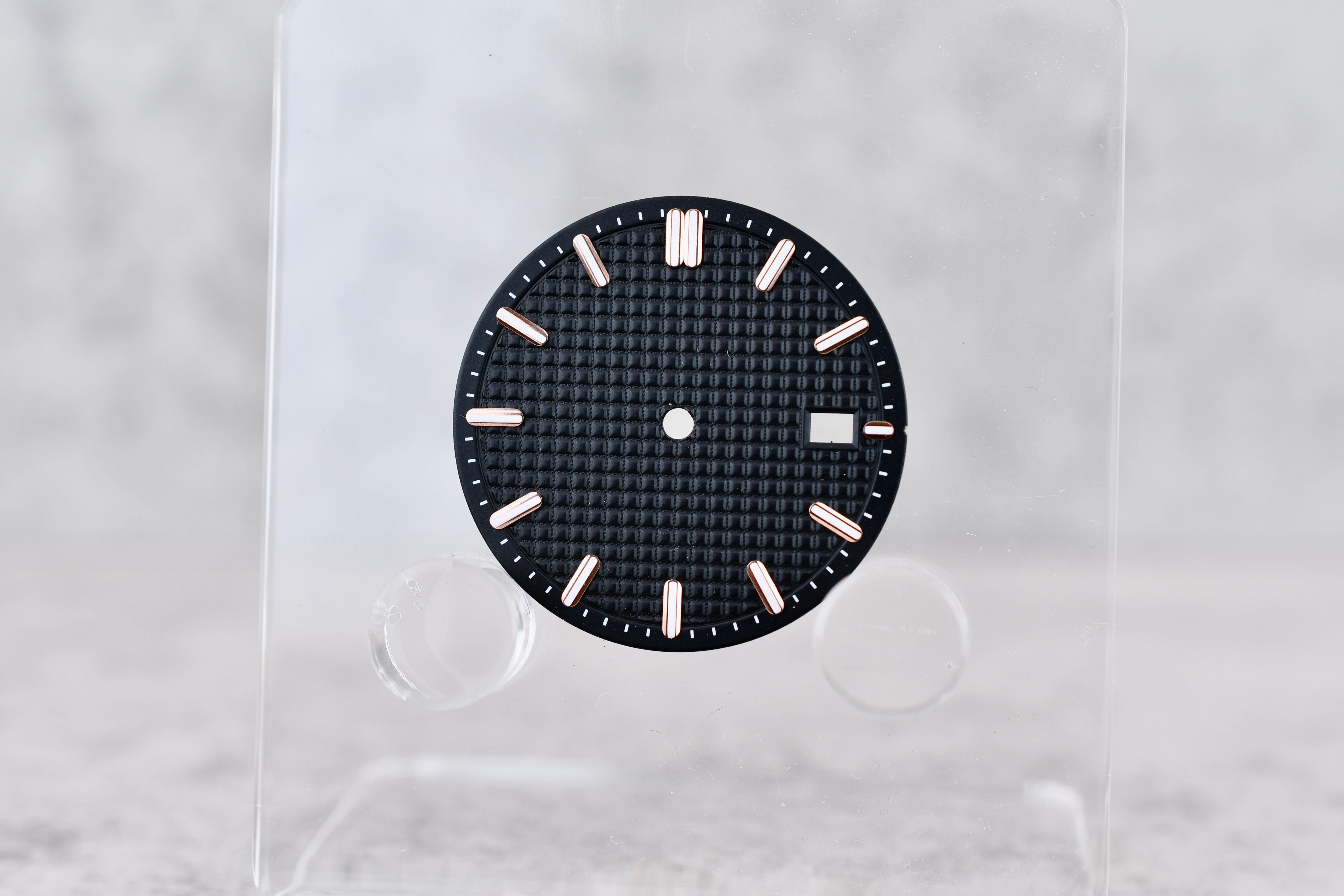 Black Waffle Dial + Rose Gold Indicies, 31.3mm