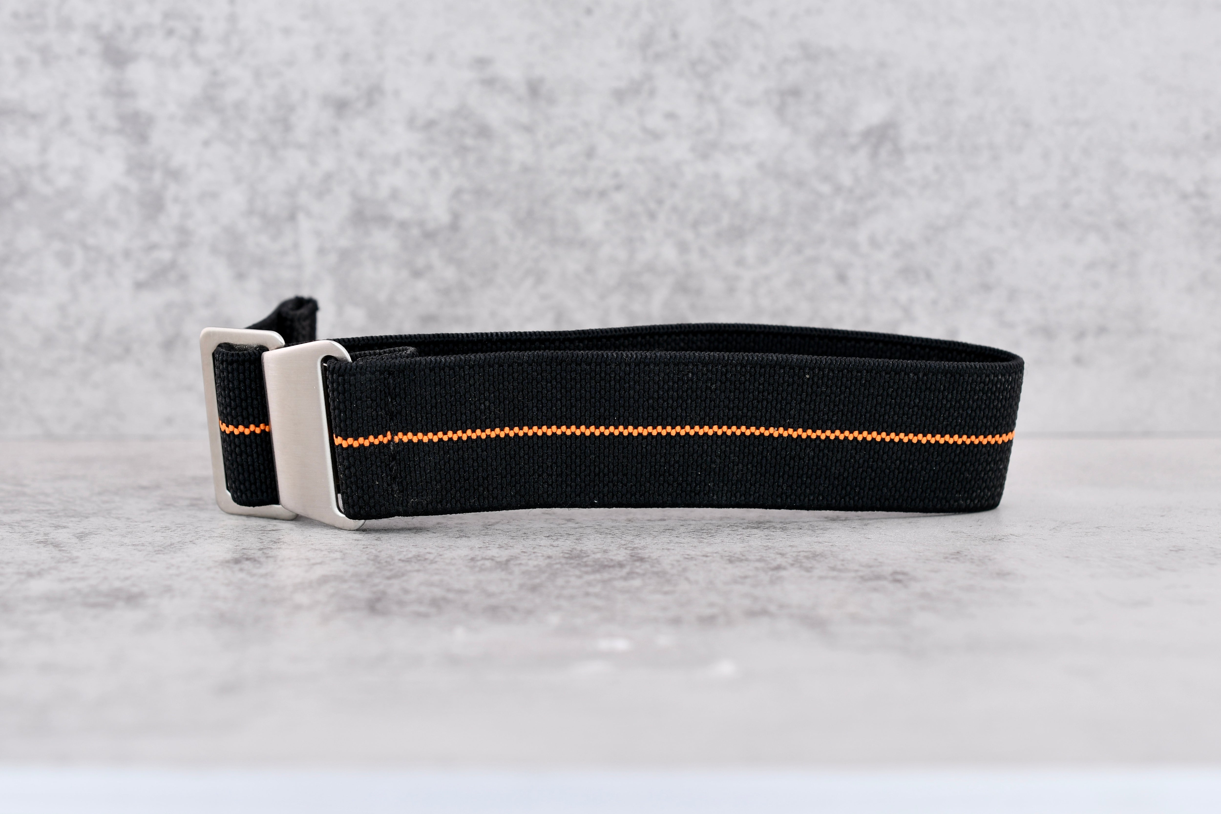 Black + Orange Stripe Elastic Strap, 22mm