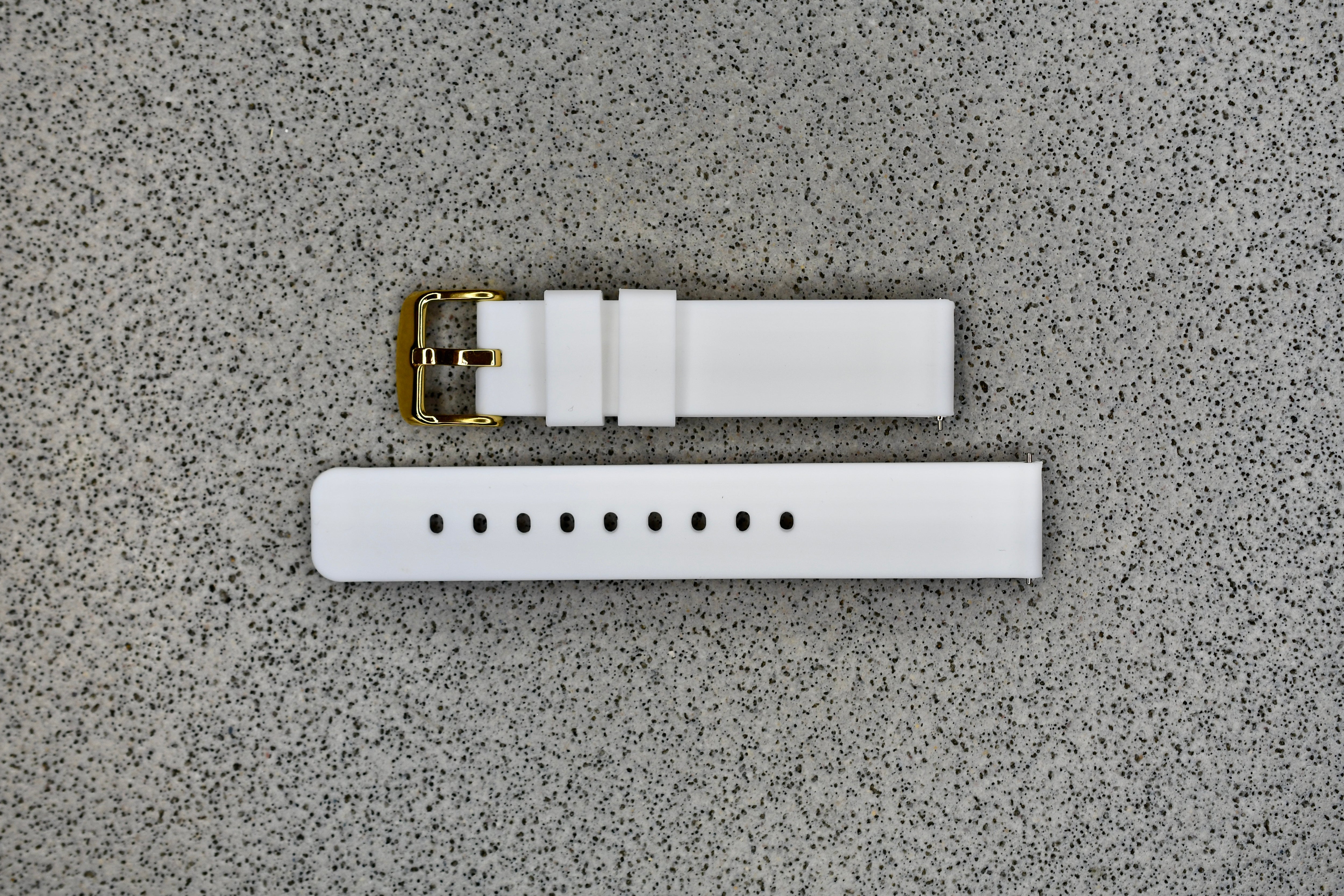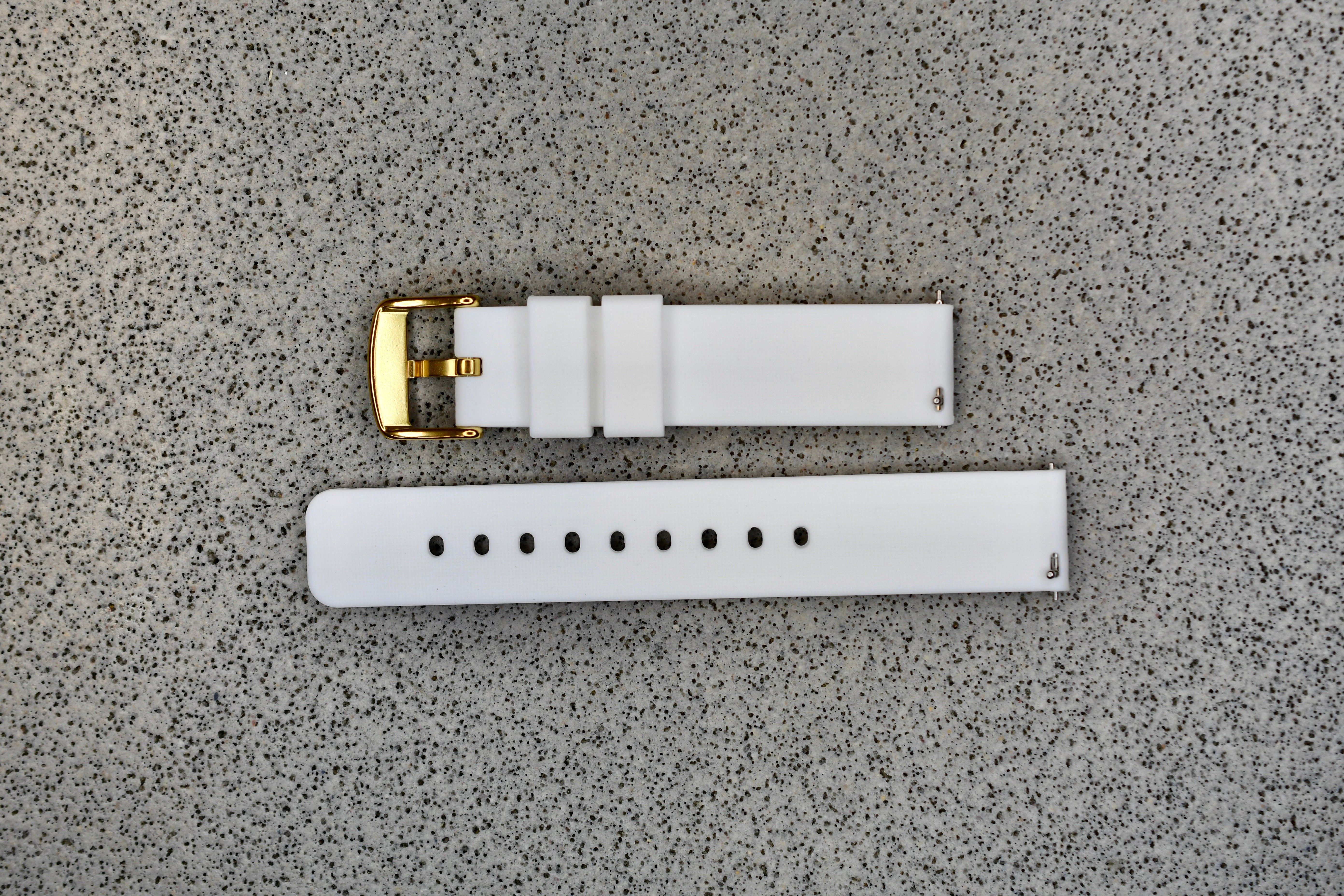 White Rubber Strap + Gold Buckle, 18mm