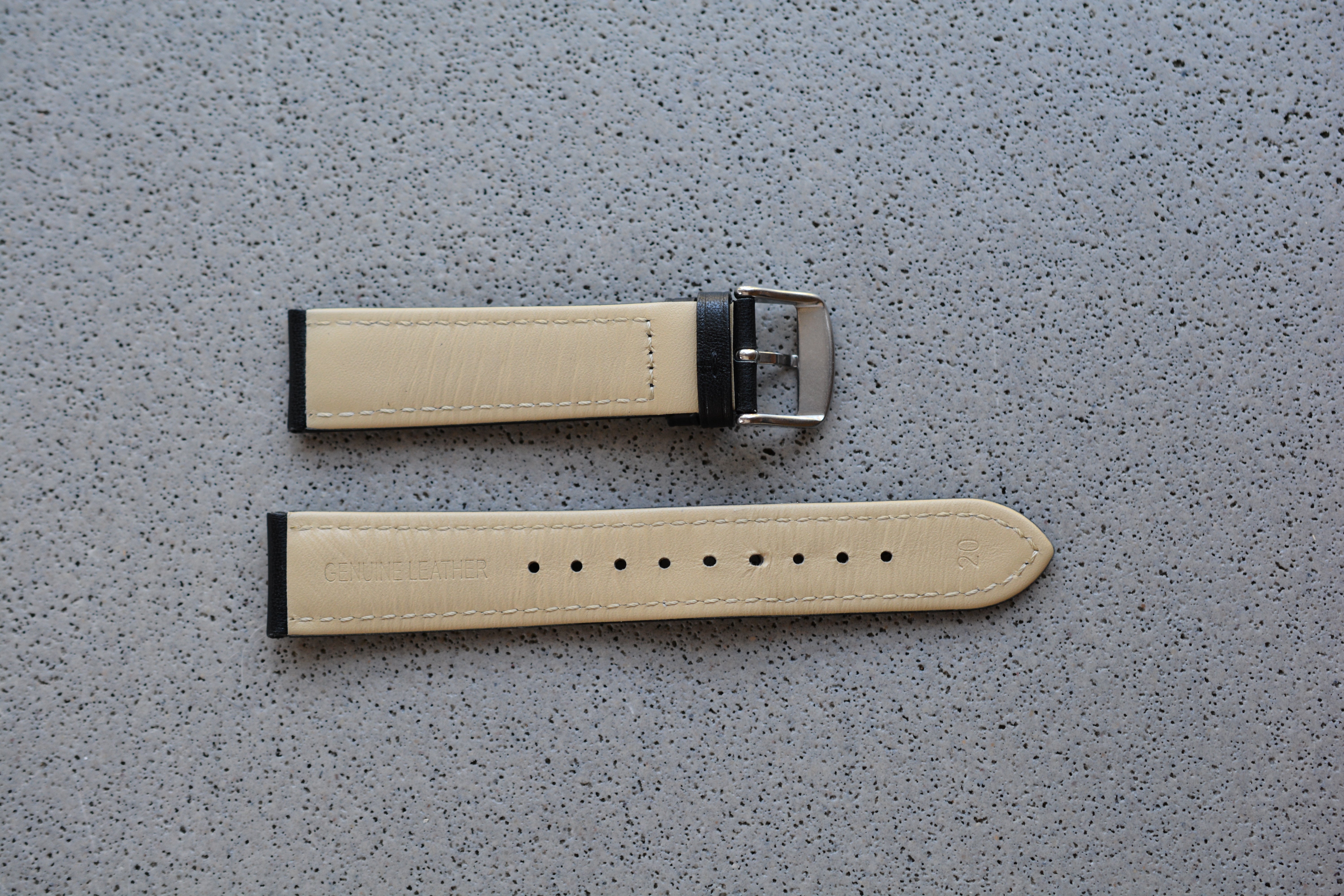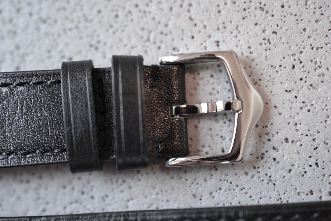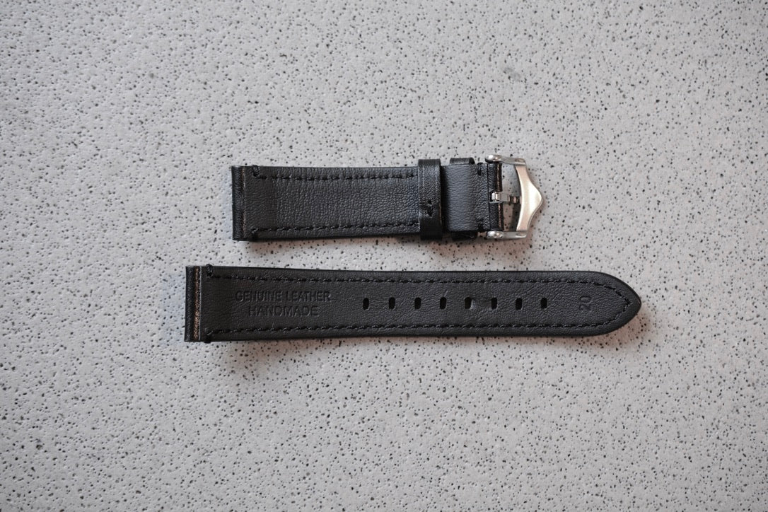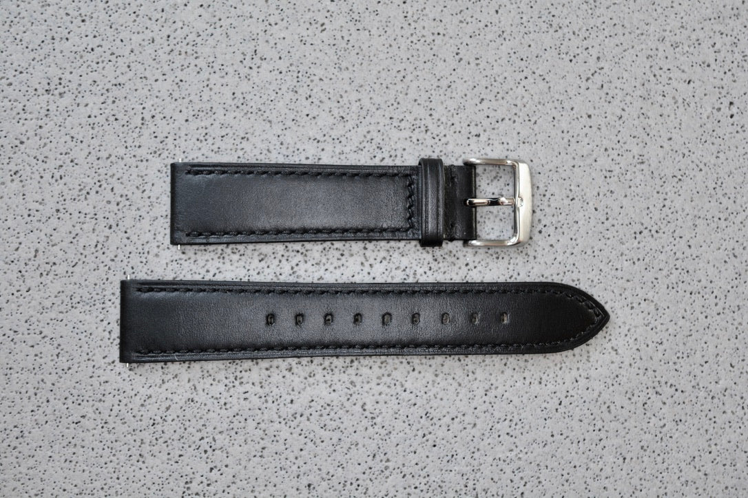Black Leather Strap w. Black Stitching, 20mm - New