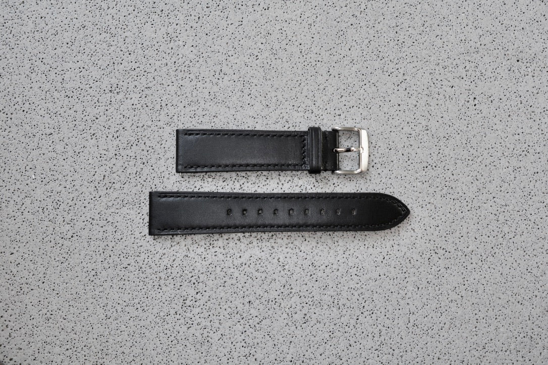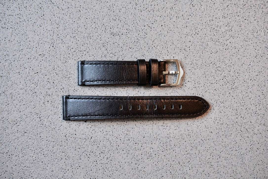 Black Leather Strap w. Black Stitching, 20mm