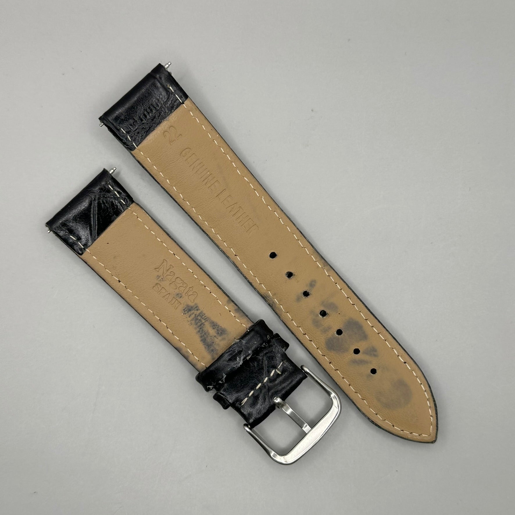 Black Nagata Leather Strap, 22mm