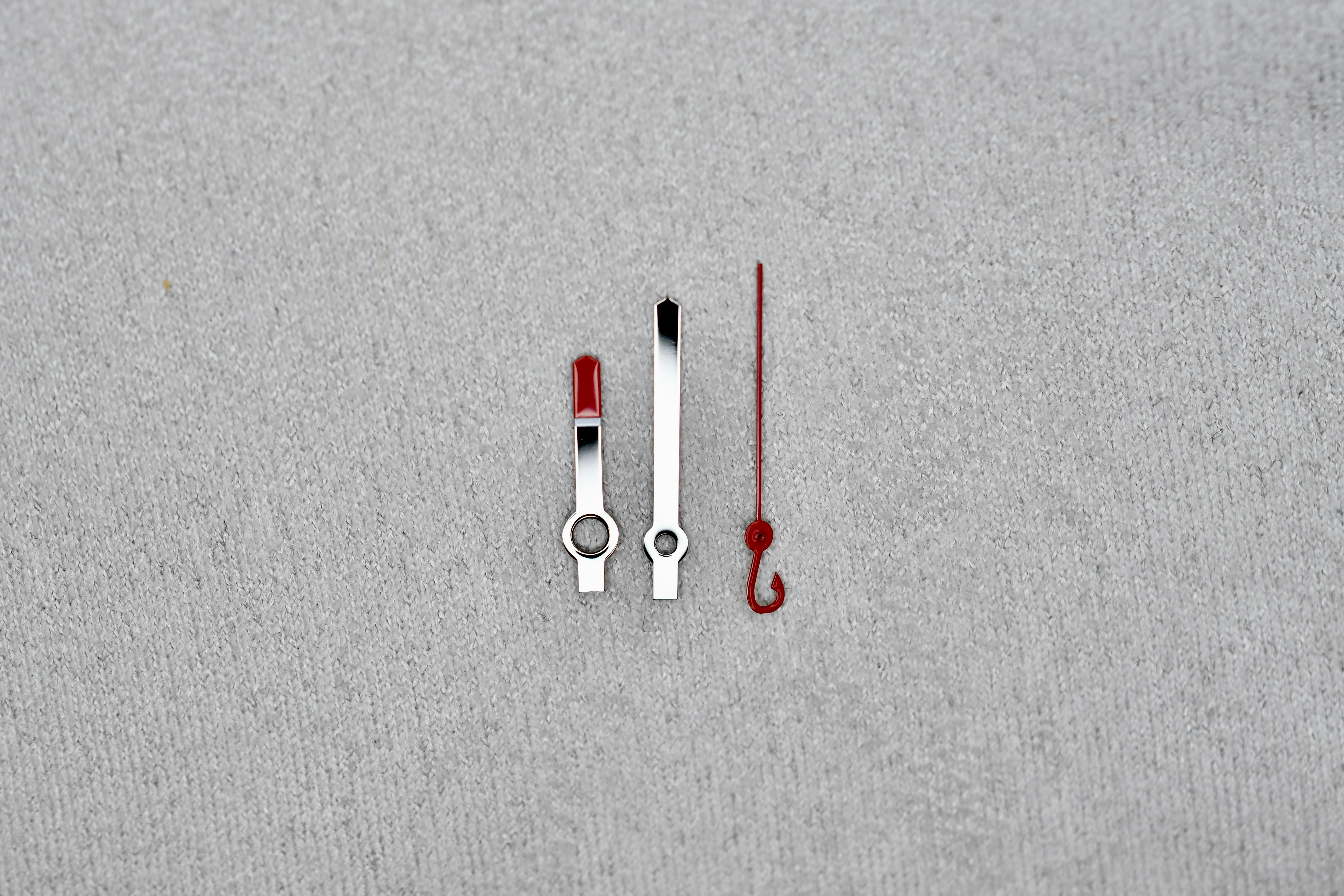 Polished Silver & Red Baton Hand Set w. Red "Hook" Second Hand - New