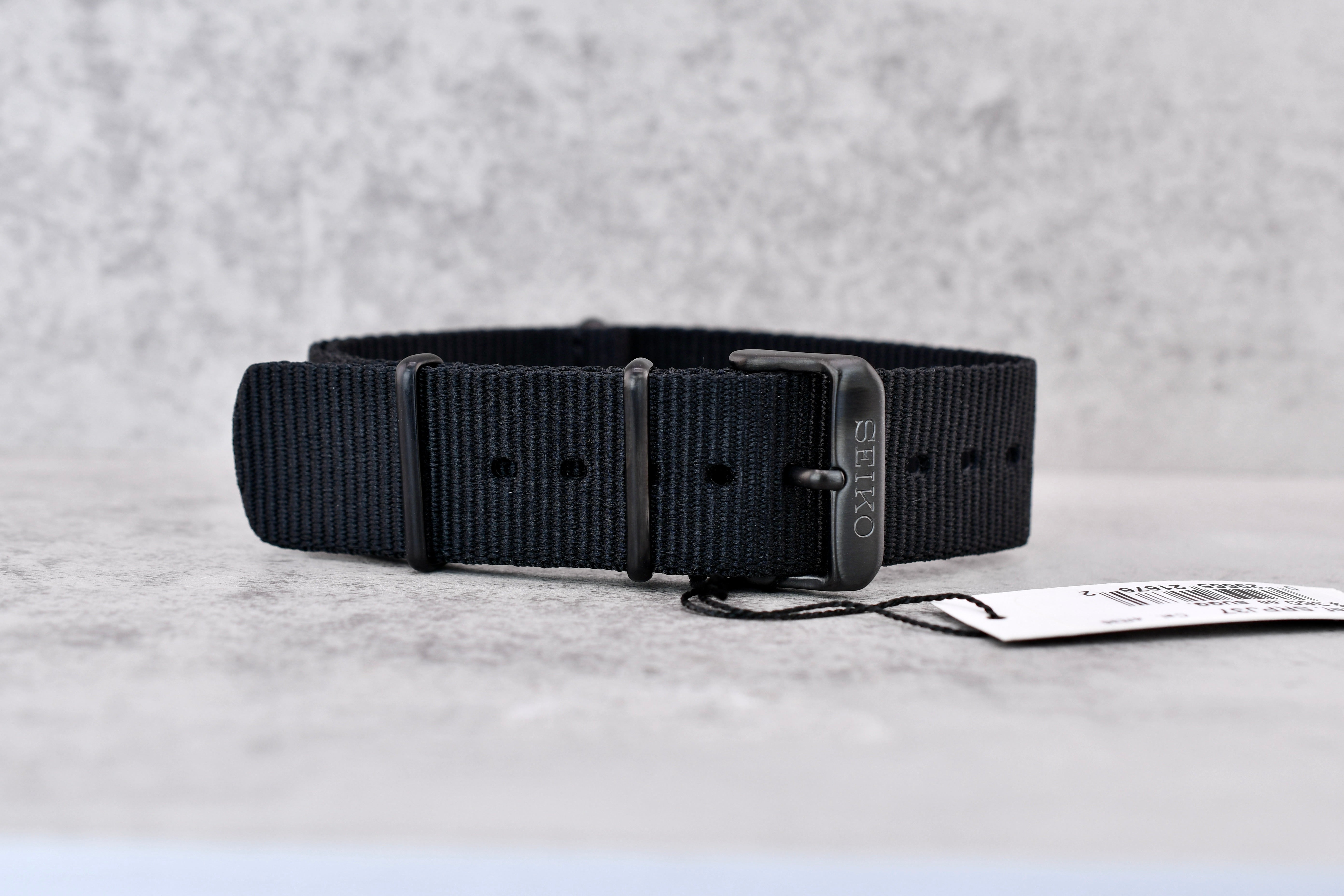 OEM Seiko Black NATO Strap, 22mm (with tags)