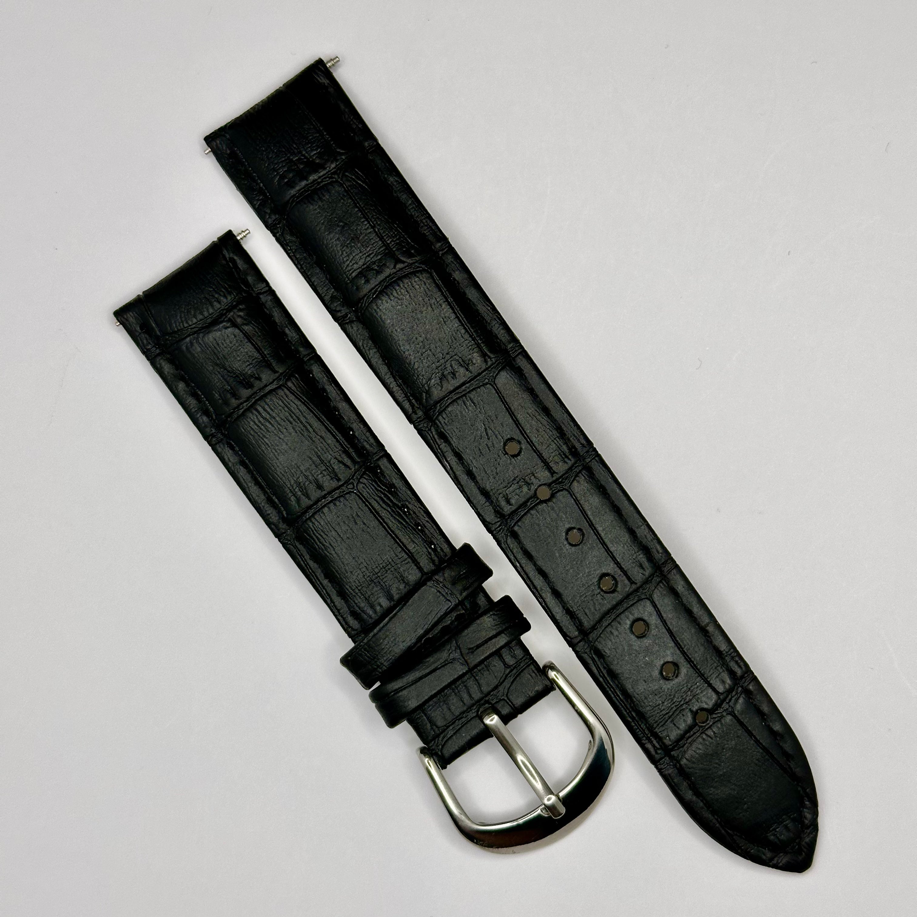 Black Leather Strap w. Silver buckle, 19mm