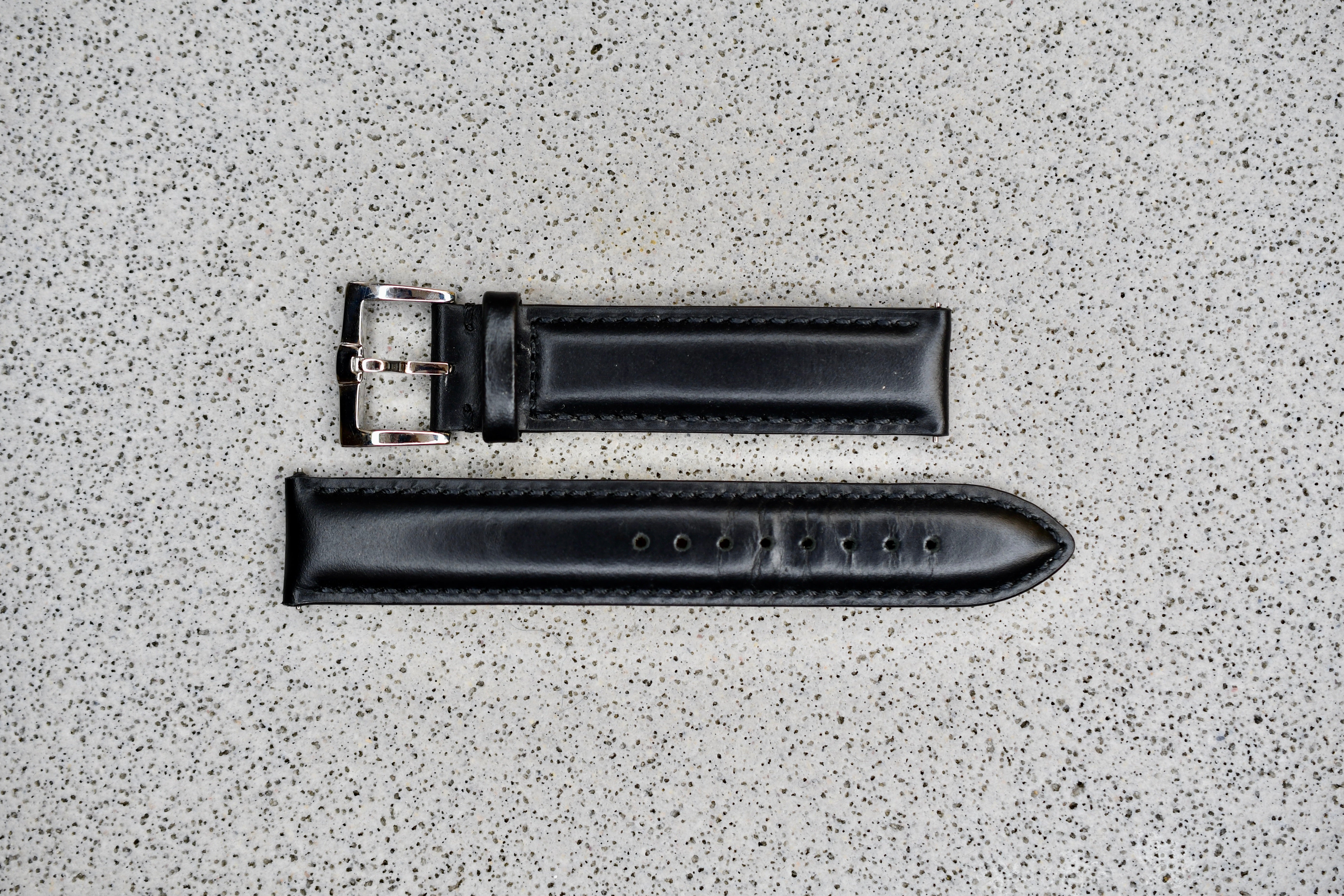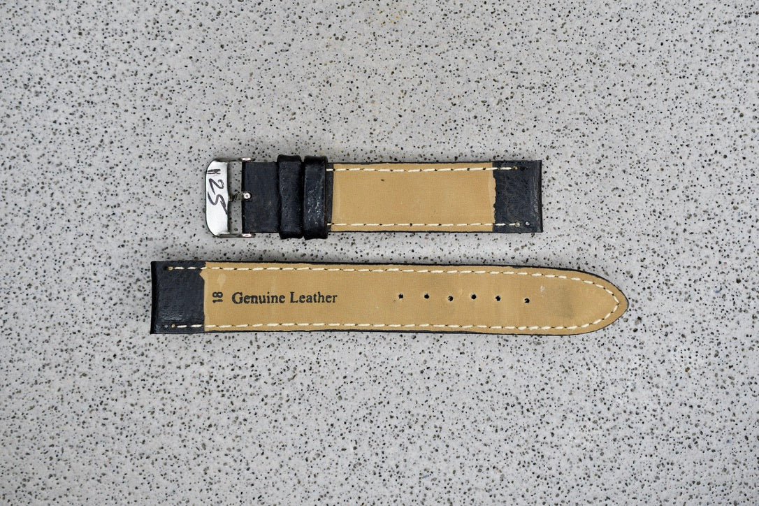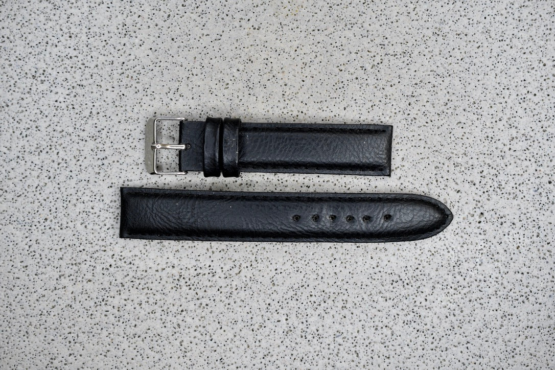 Black Toscana Leather Strap + Black Stitching, 18mm