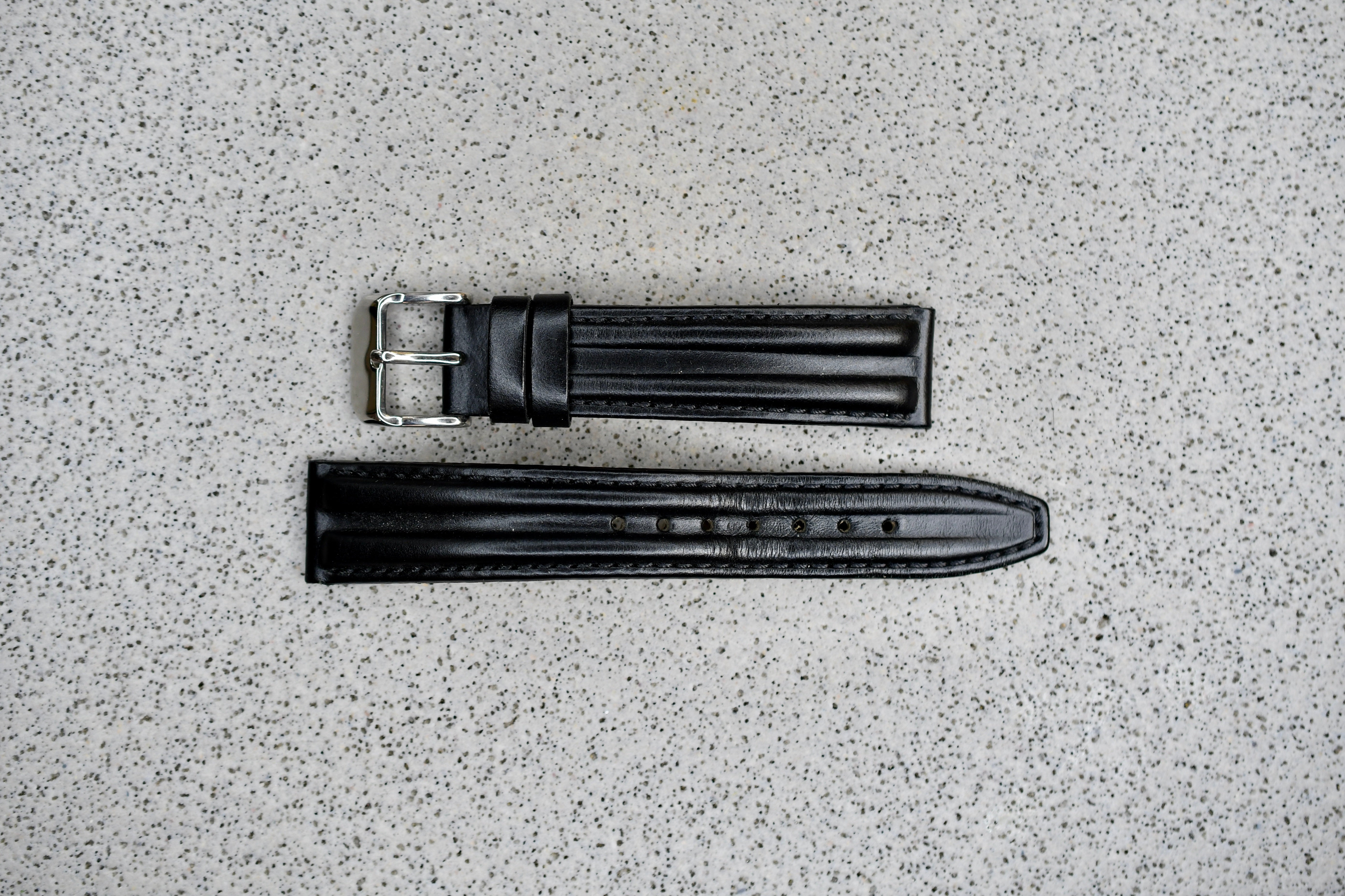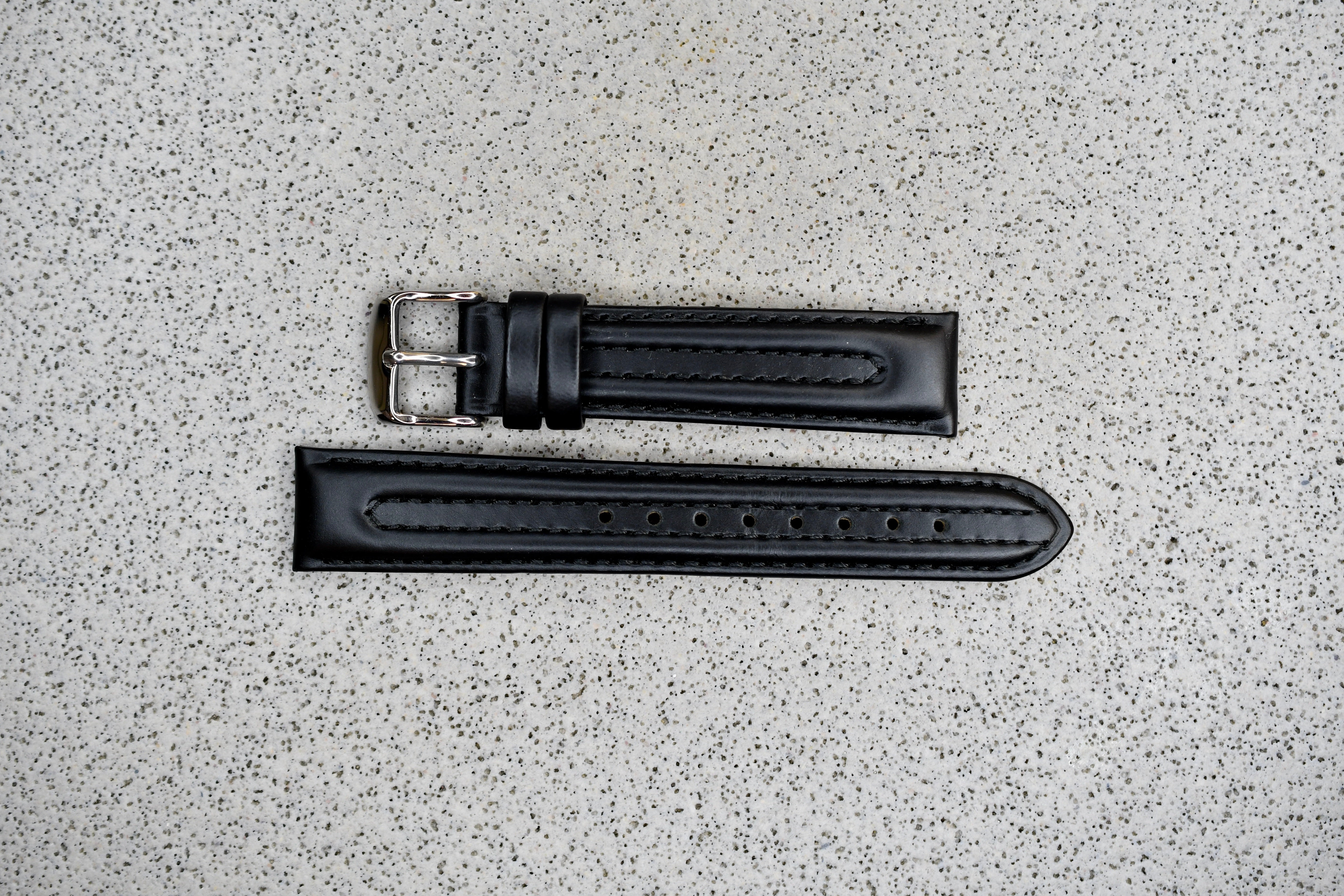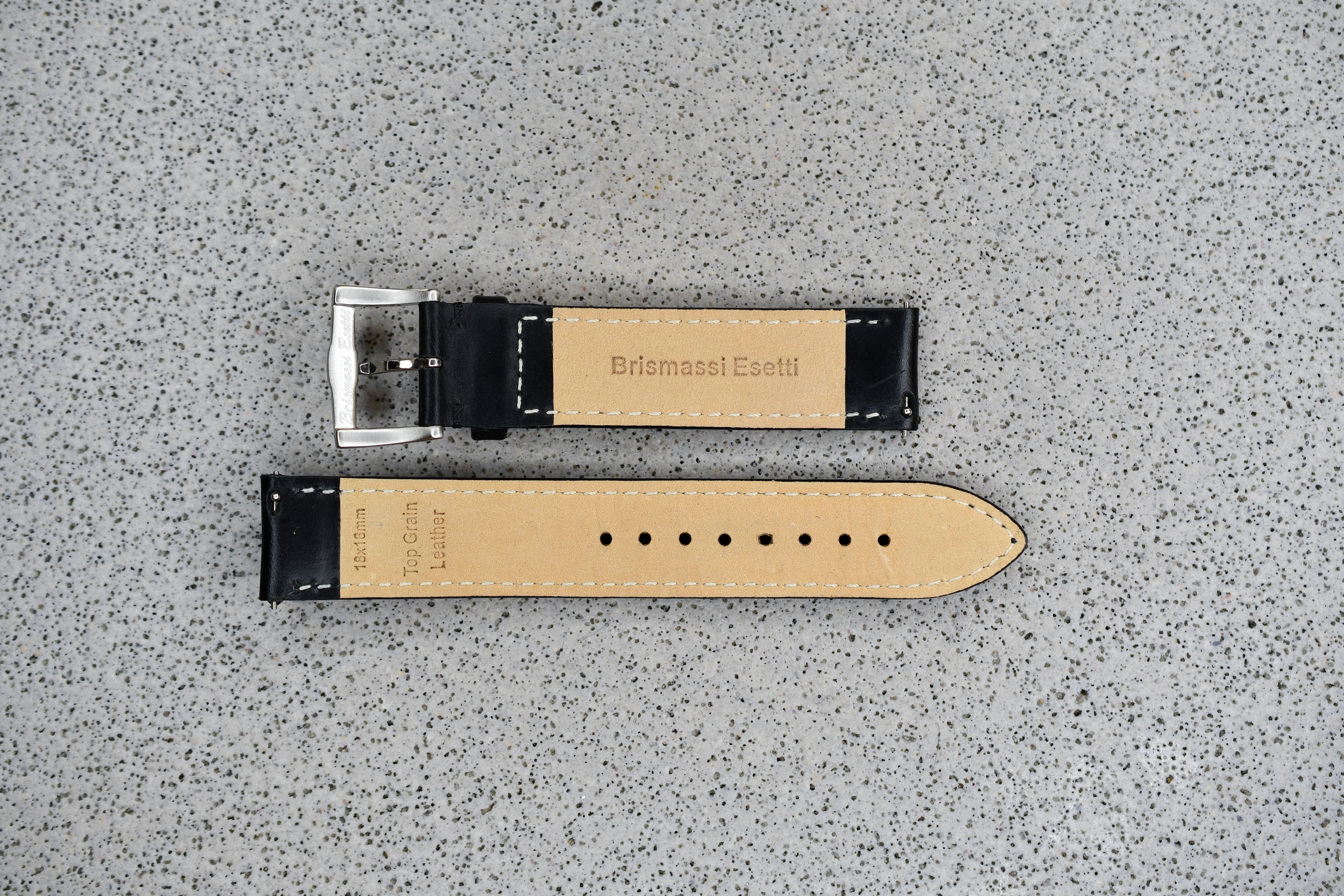 Black Toscana Leather Strap + Black Stitching, 18mm
