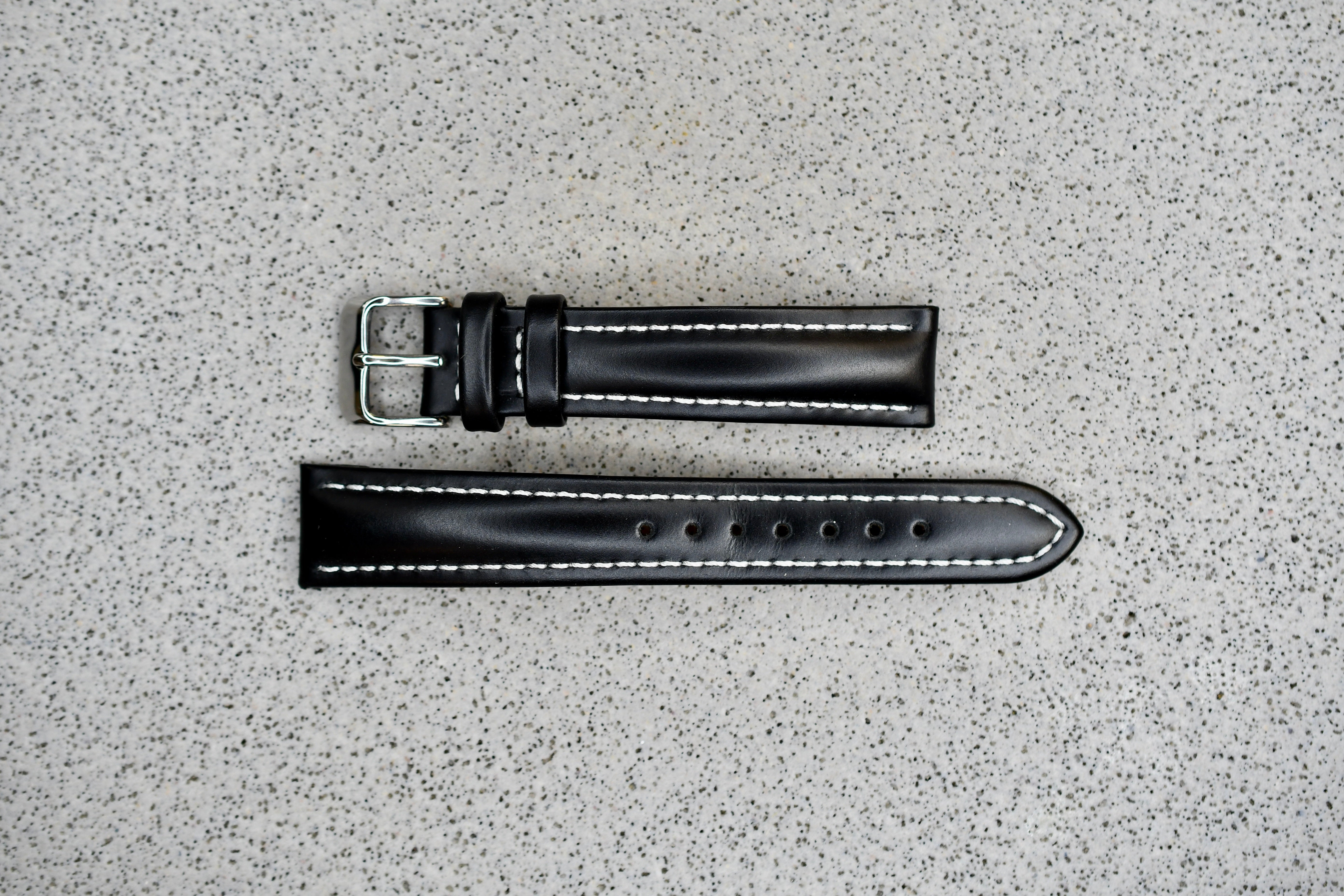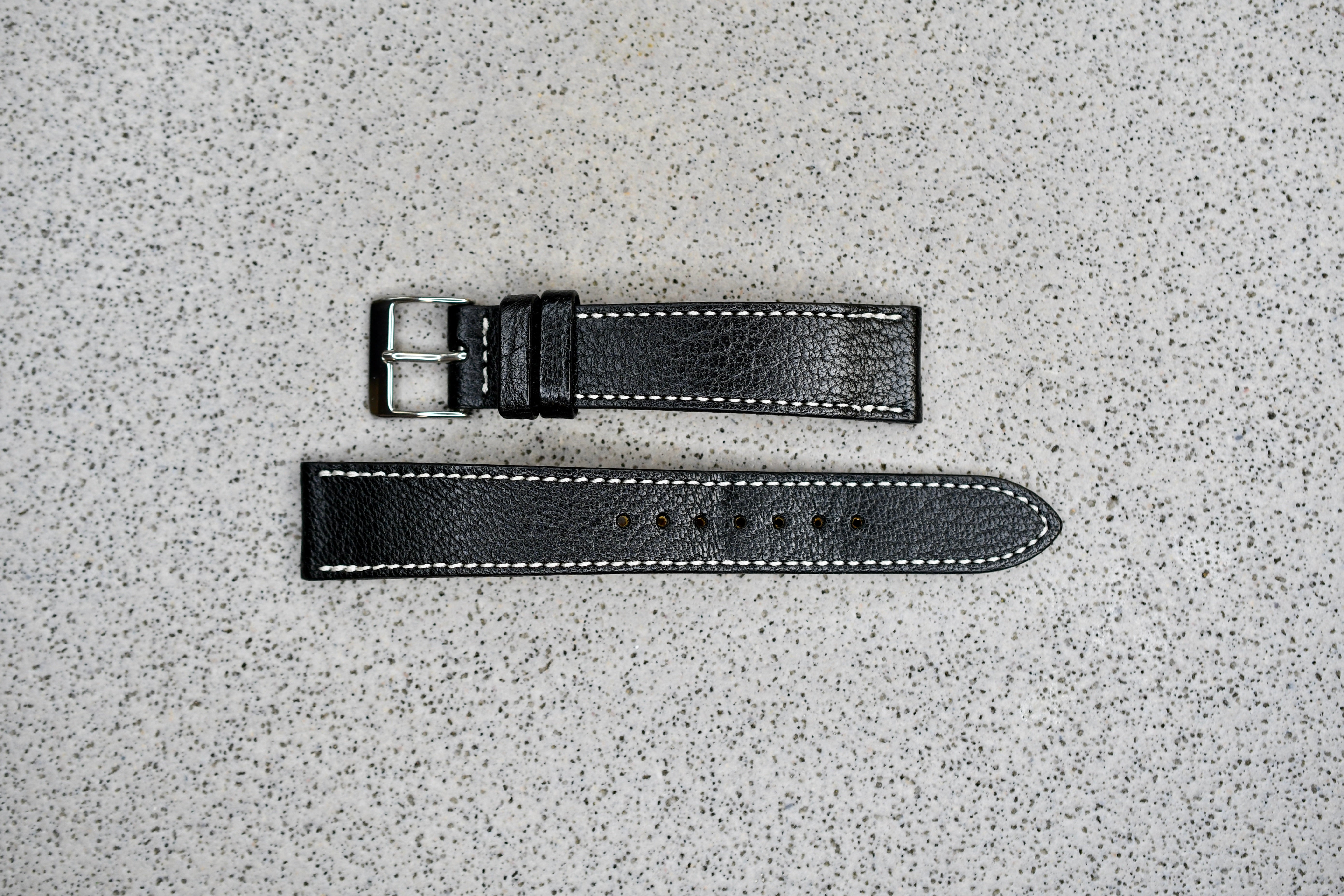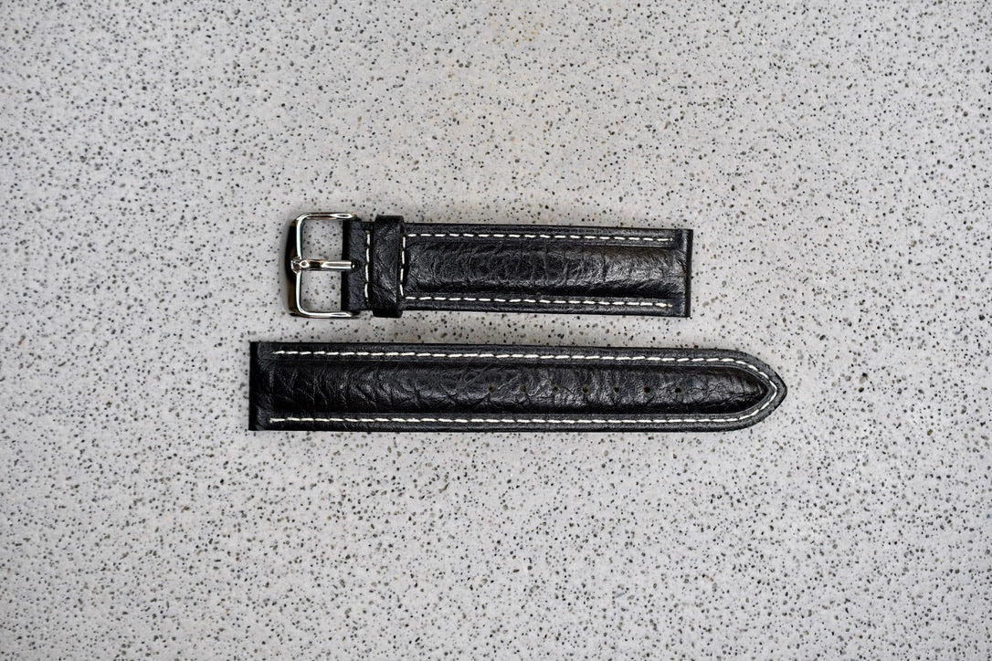 Black Pebble Leather + White Stitching, 18mm