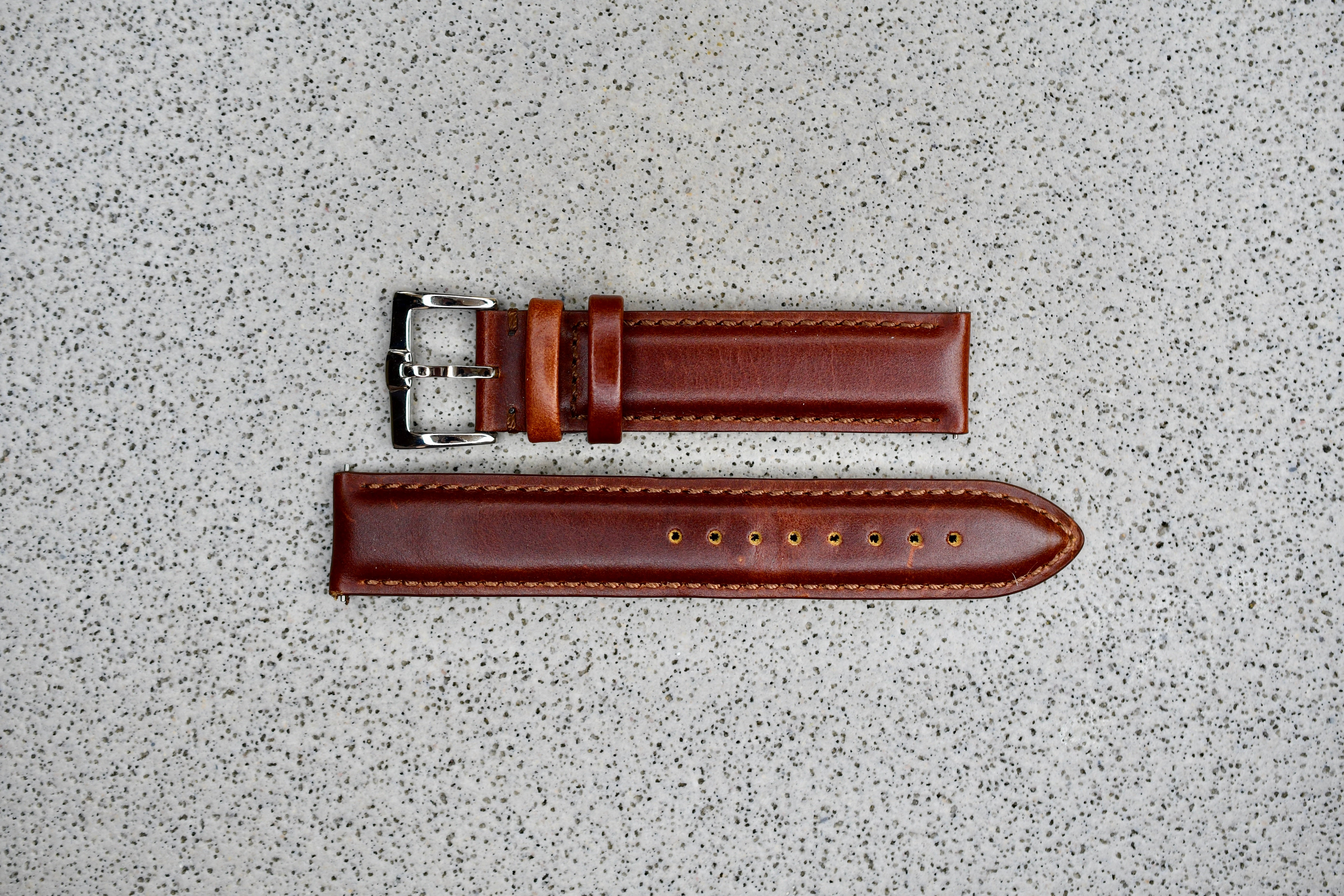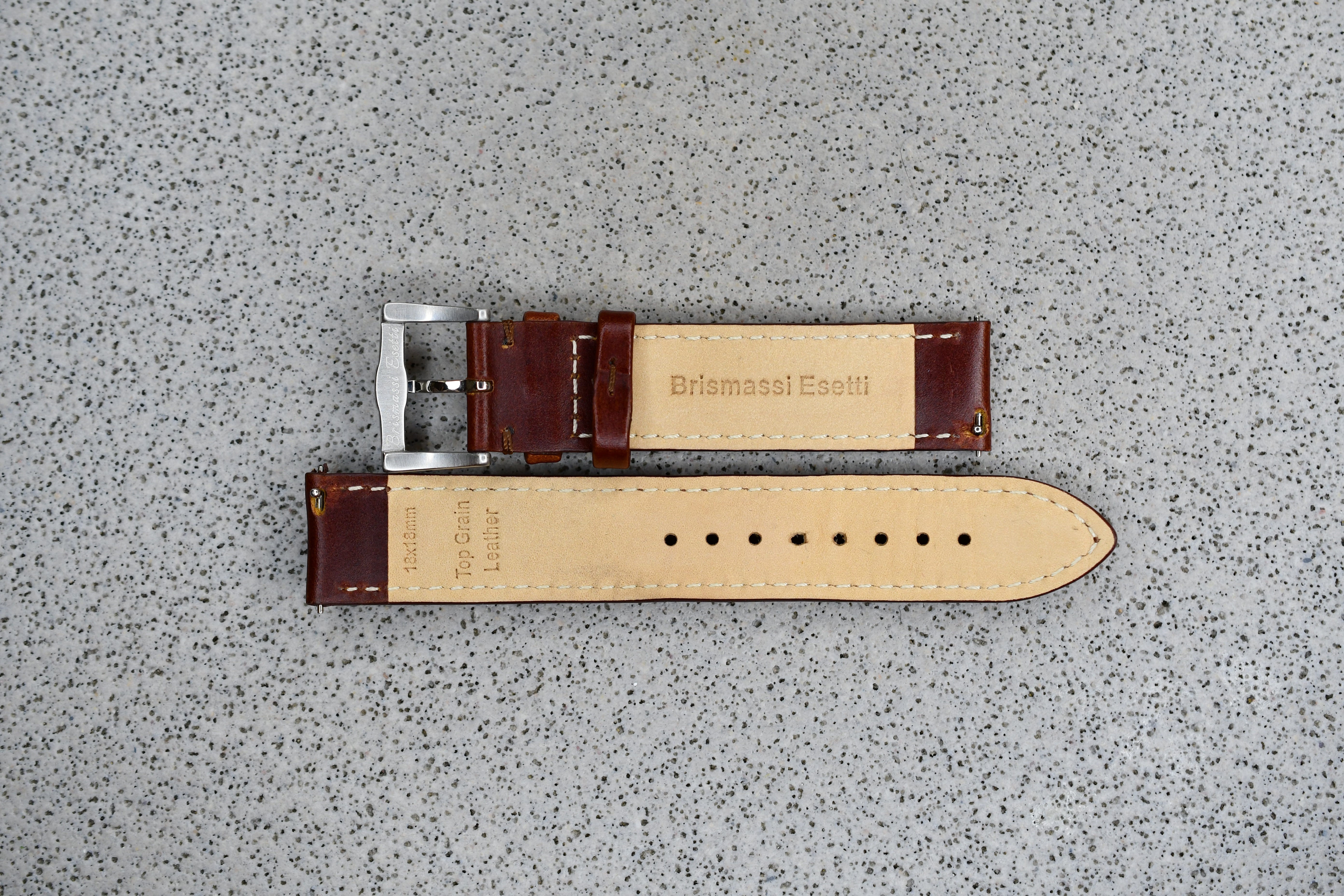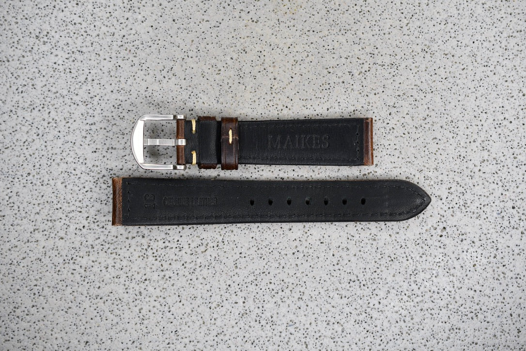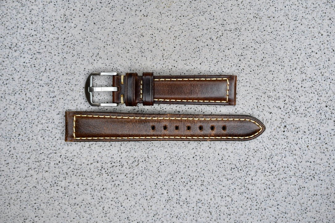 Brown Leather Strap + Khaki Stitching, 18mm
