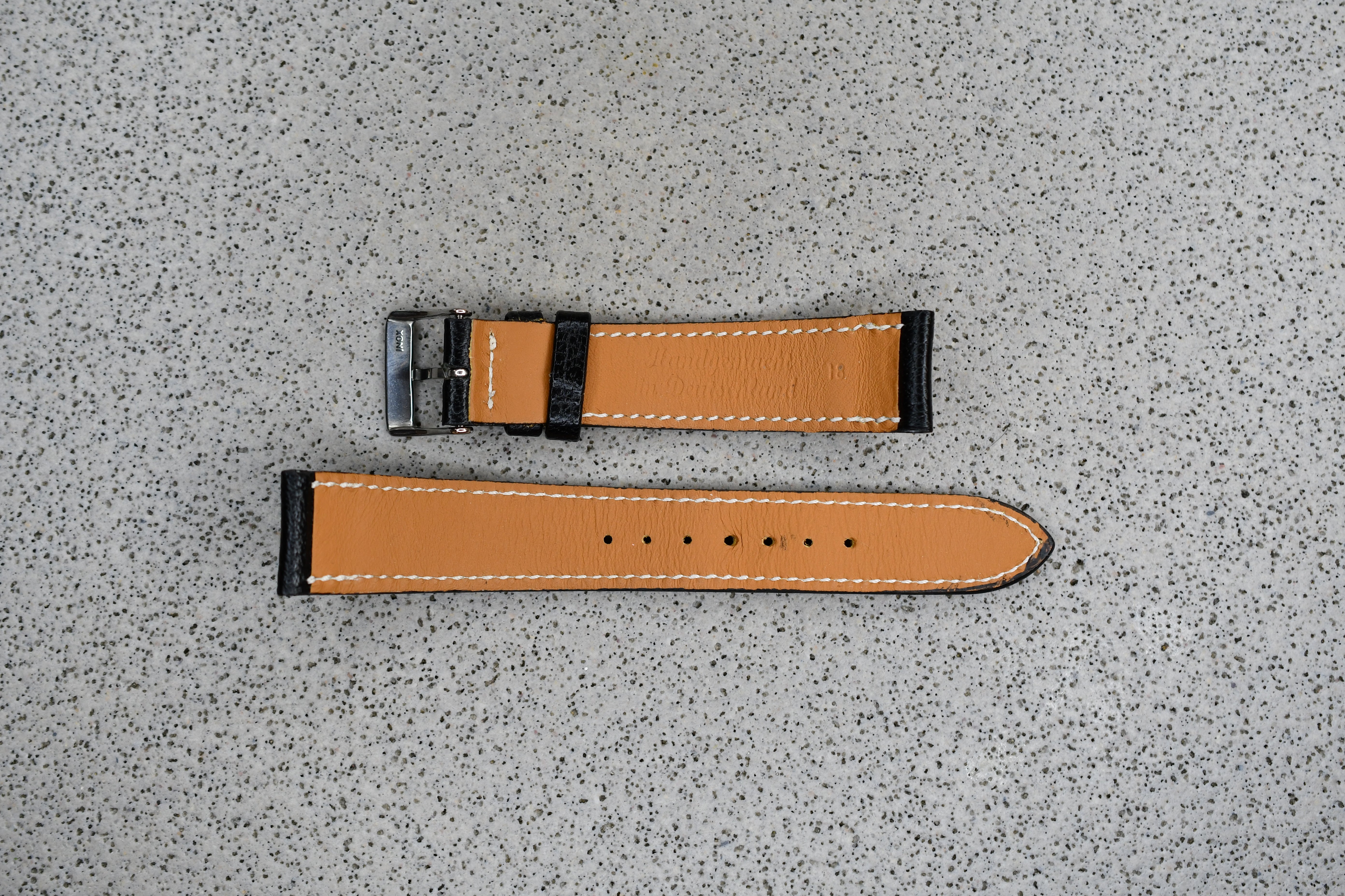 Black Textured Leather + White Stitching, 18mm