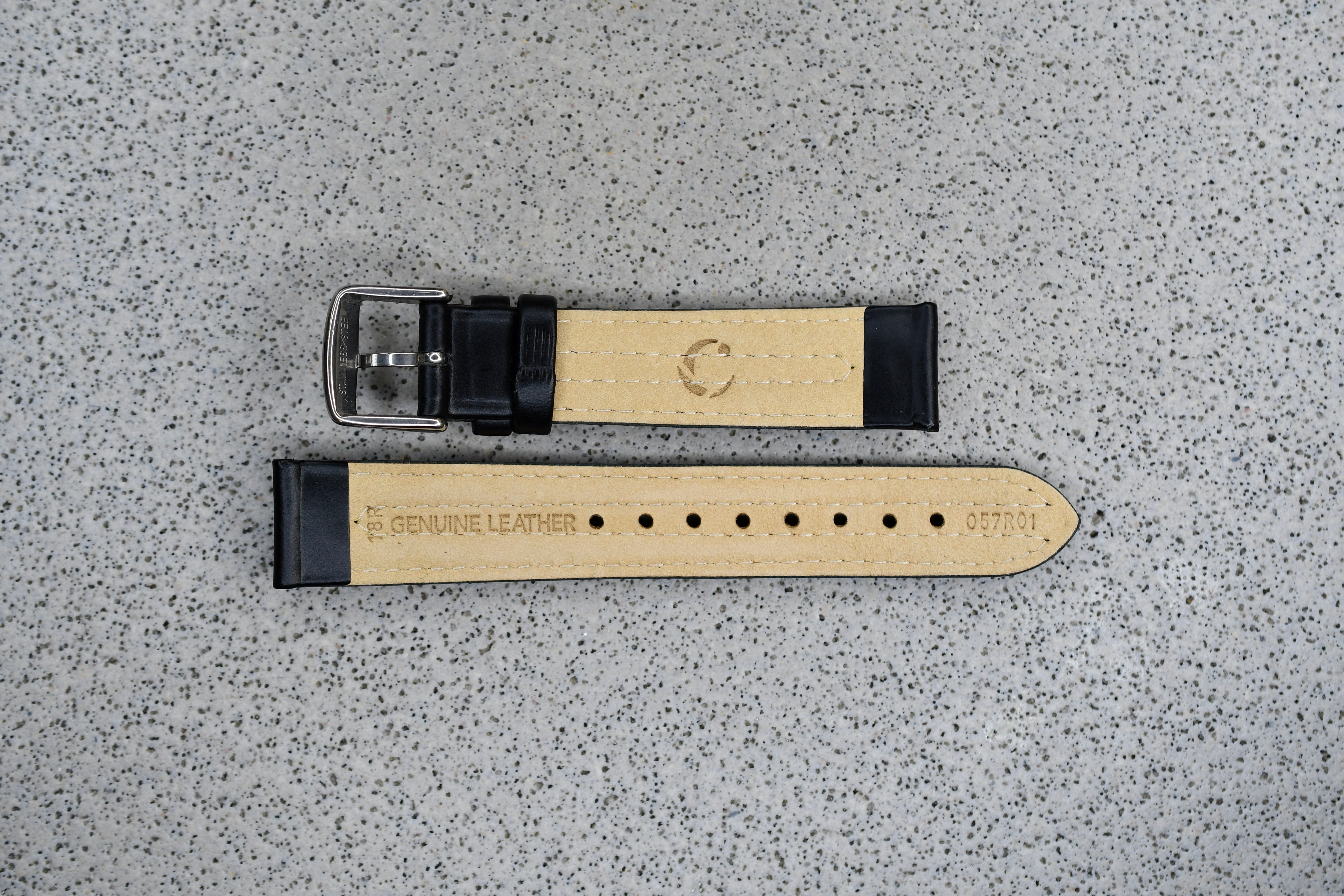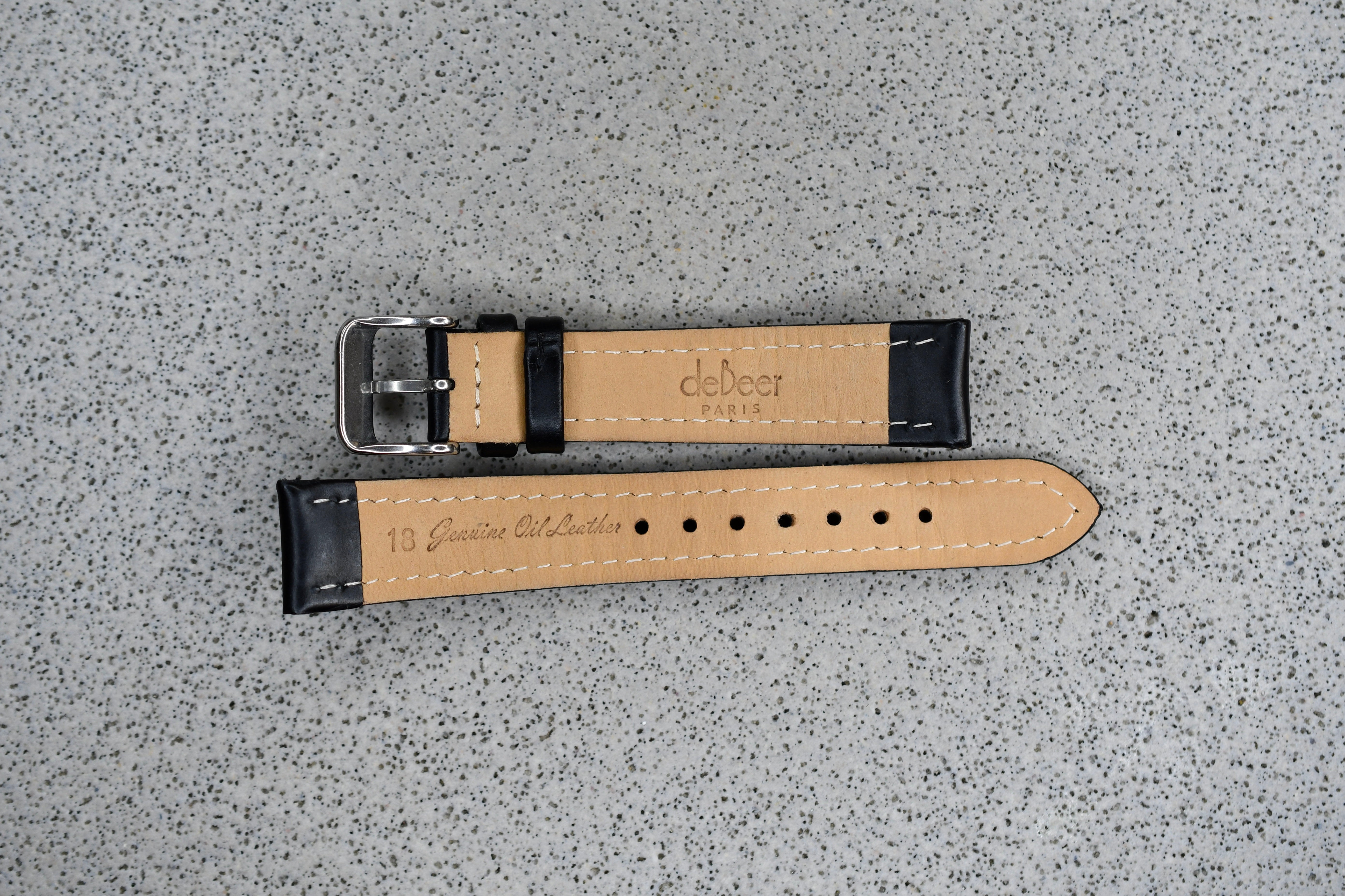 Black Leather Strap + Silver Buckle, 18mm