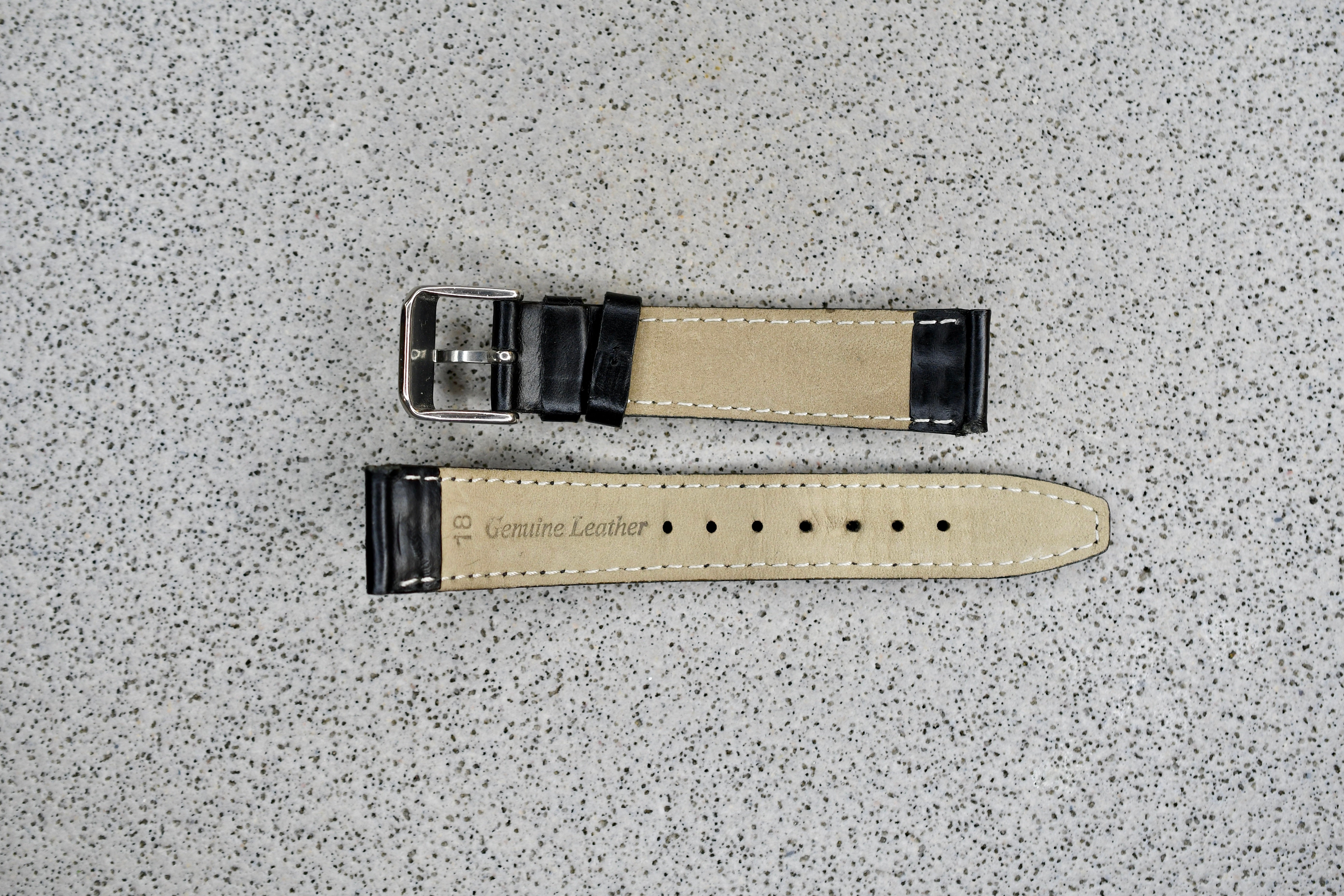 Black Leather Strap + Black Stitching, 18mm