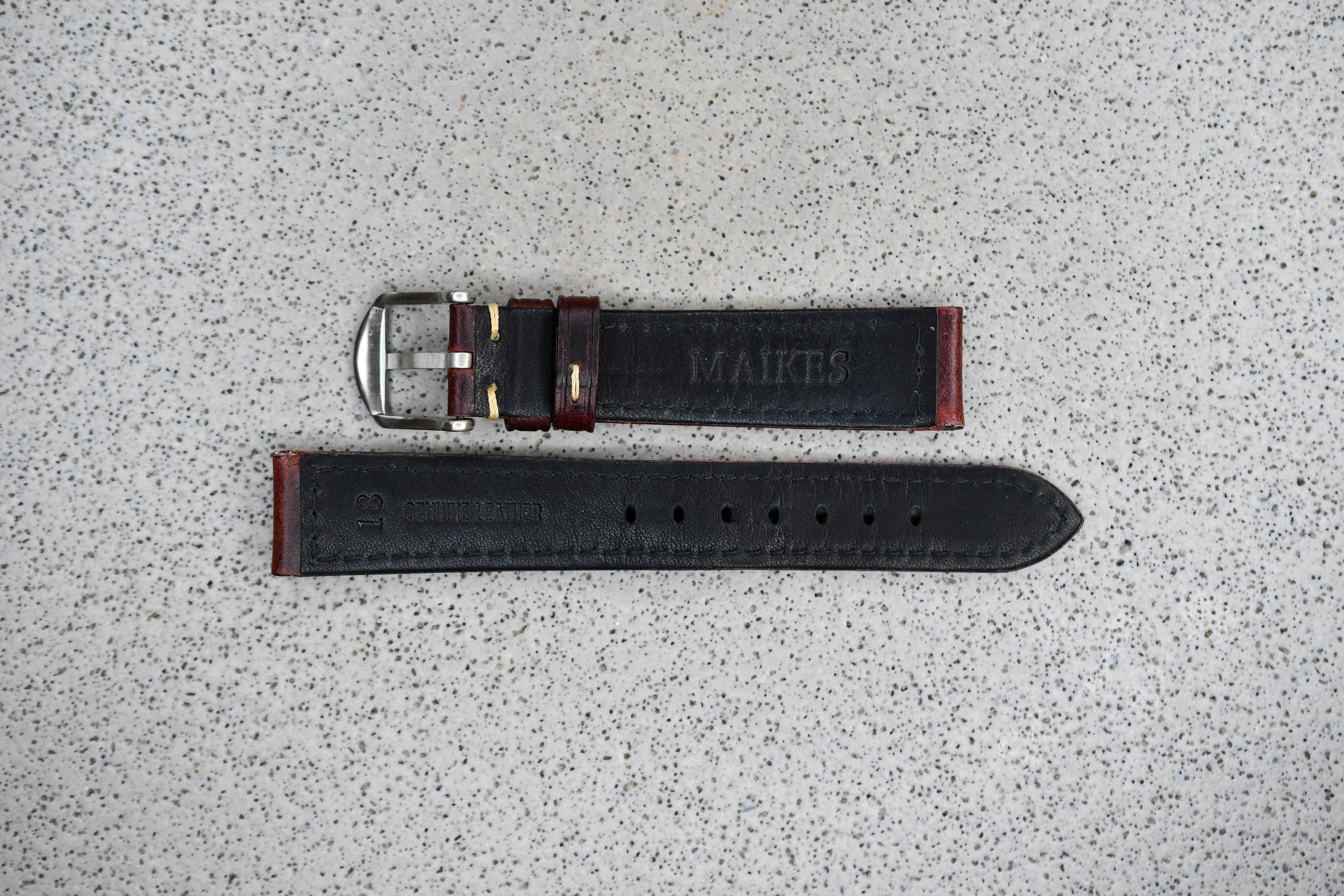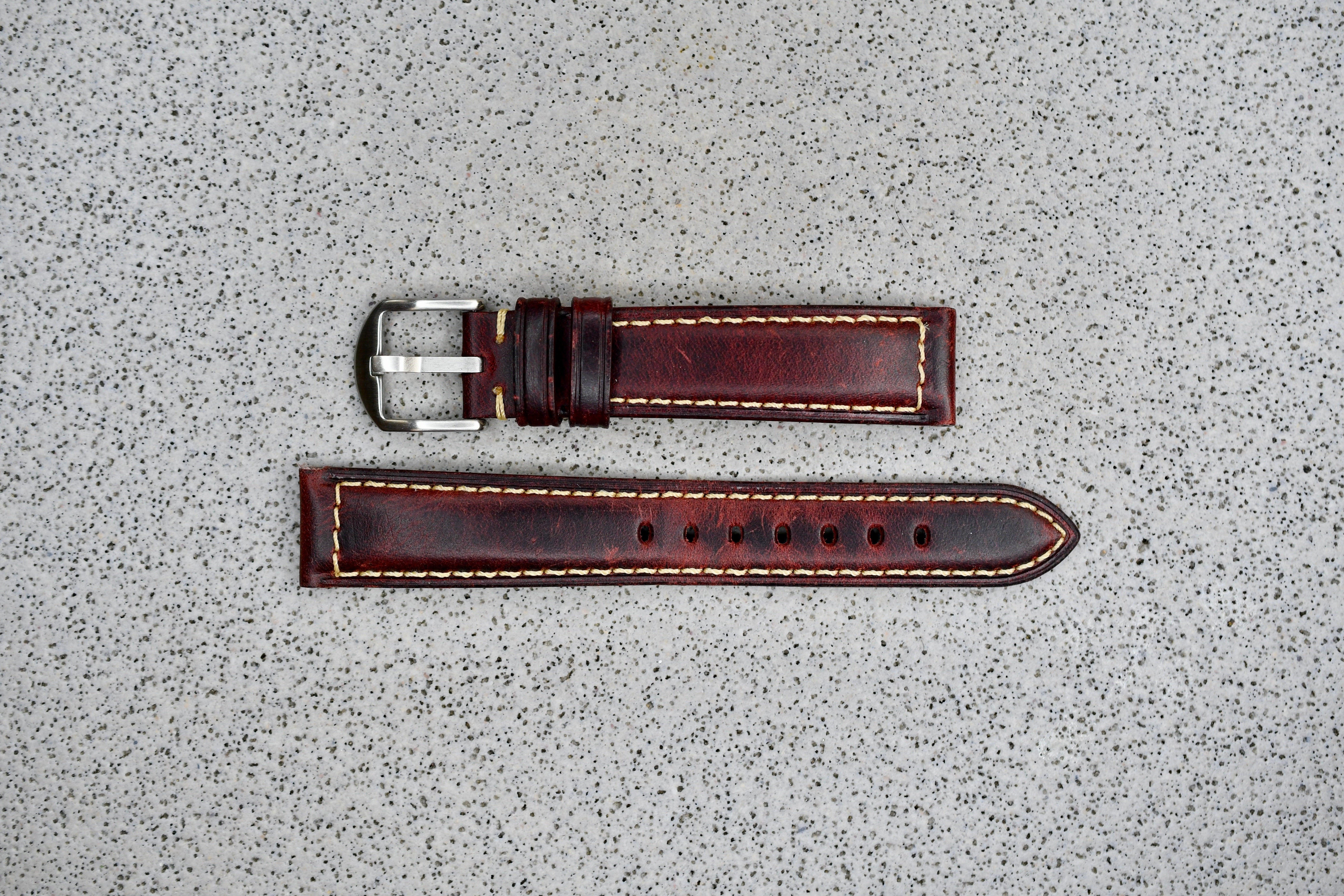 Reddish Brown Leather Strap + Khaki Stitching, 18mm