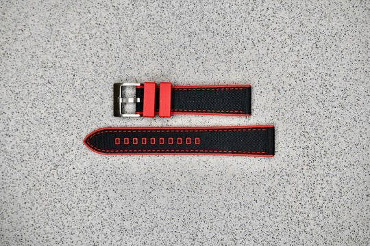 Red & Black Canvas Strap + Black hardware, 20mm