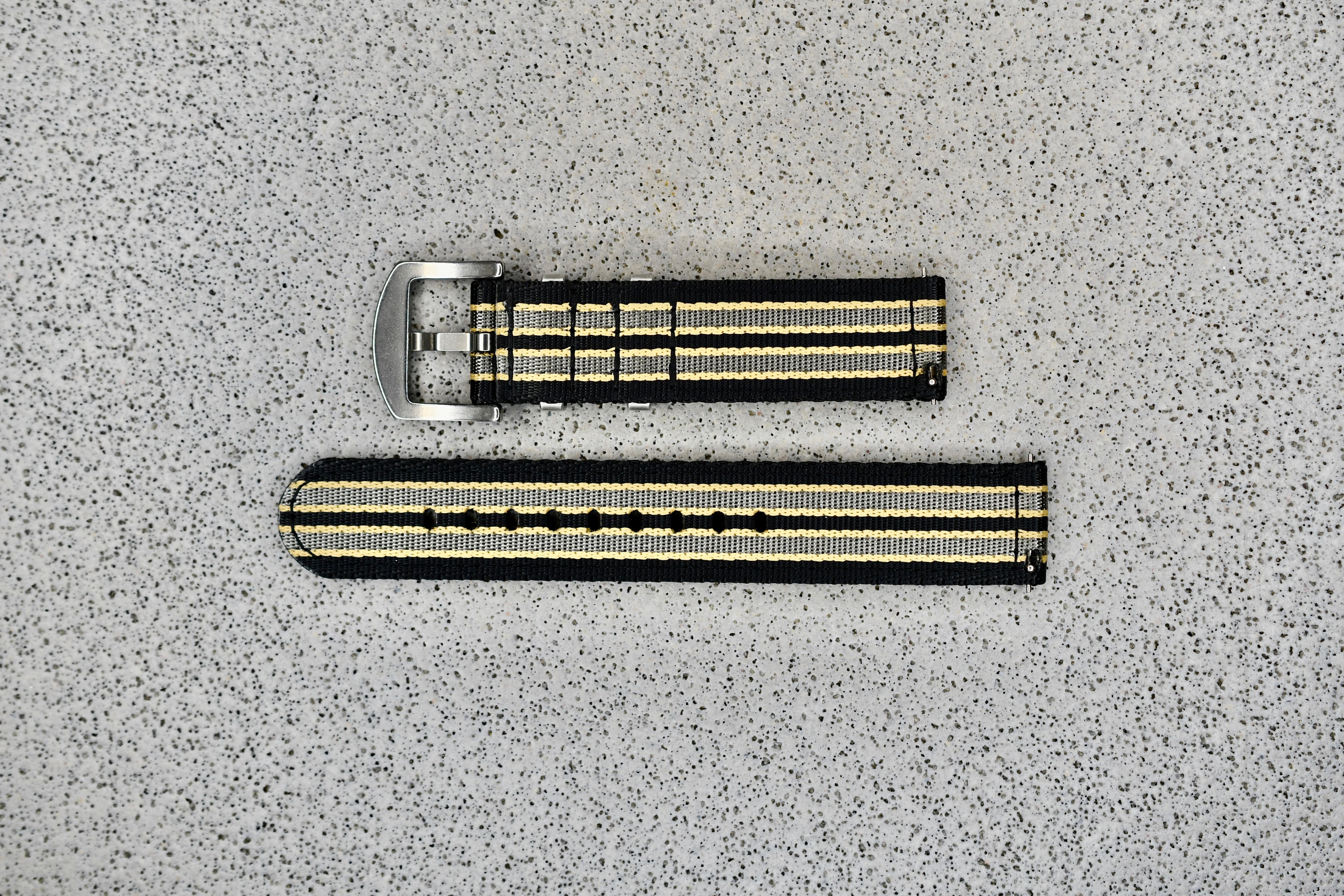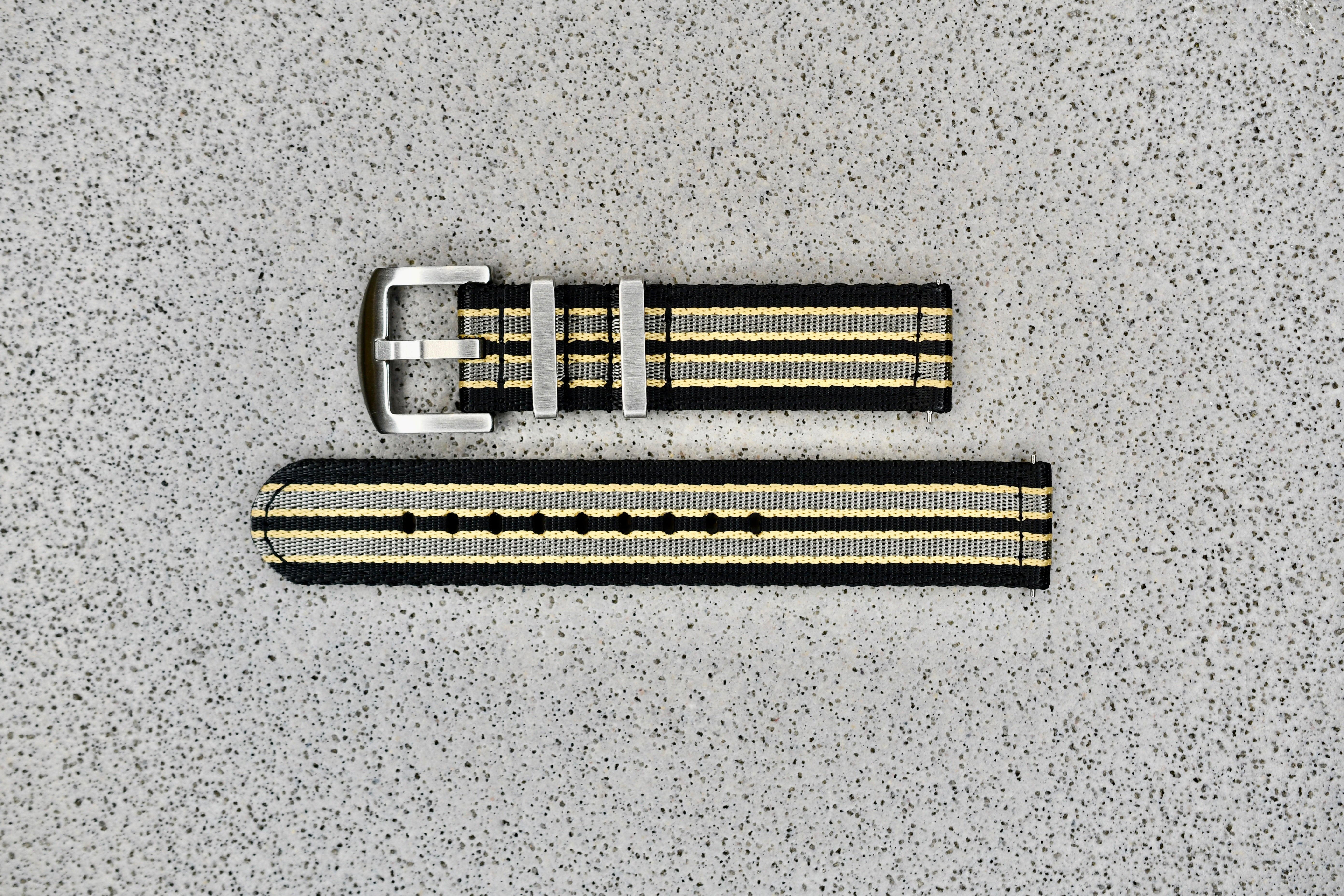 Black/Khaki/Silver Two-Piece NATO Strap, 20mm