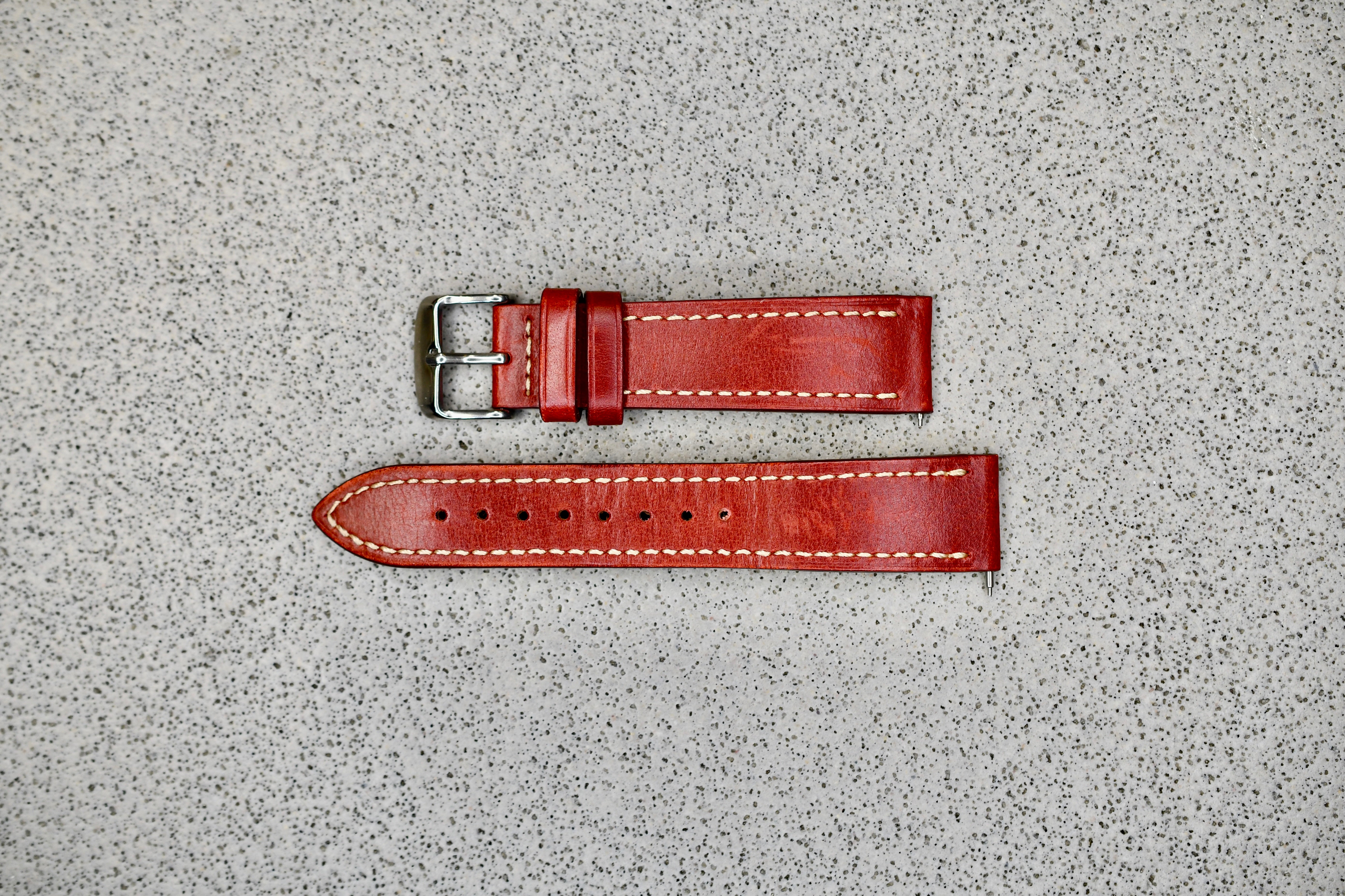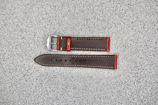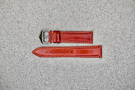 Red Leather Strap w. Tan Stitching, 20mm