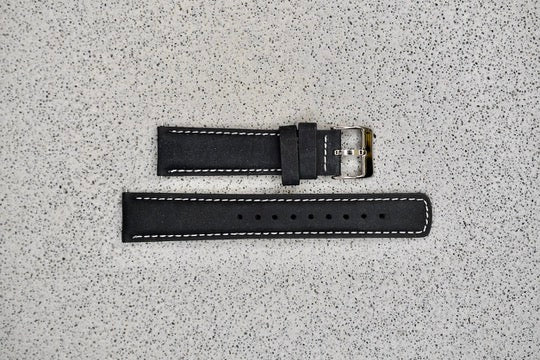 Black Leather Strap w. Black Stitching, 20mm