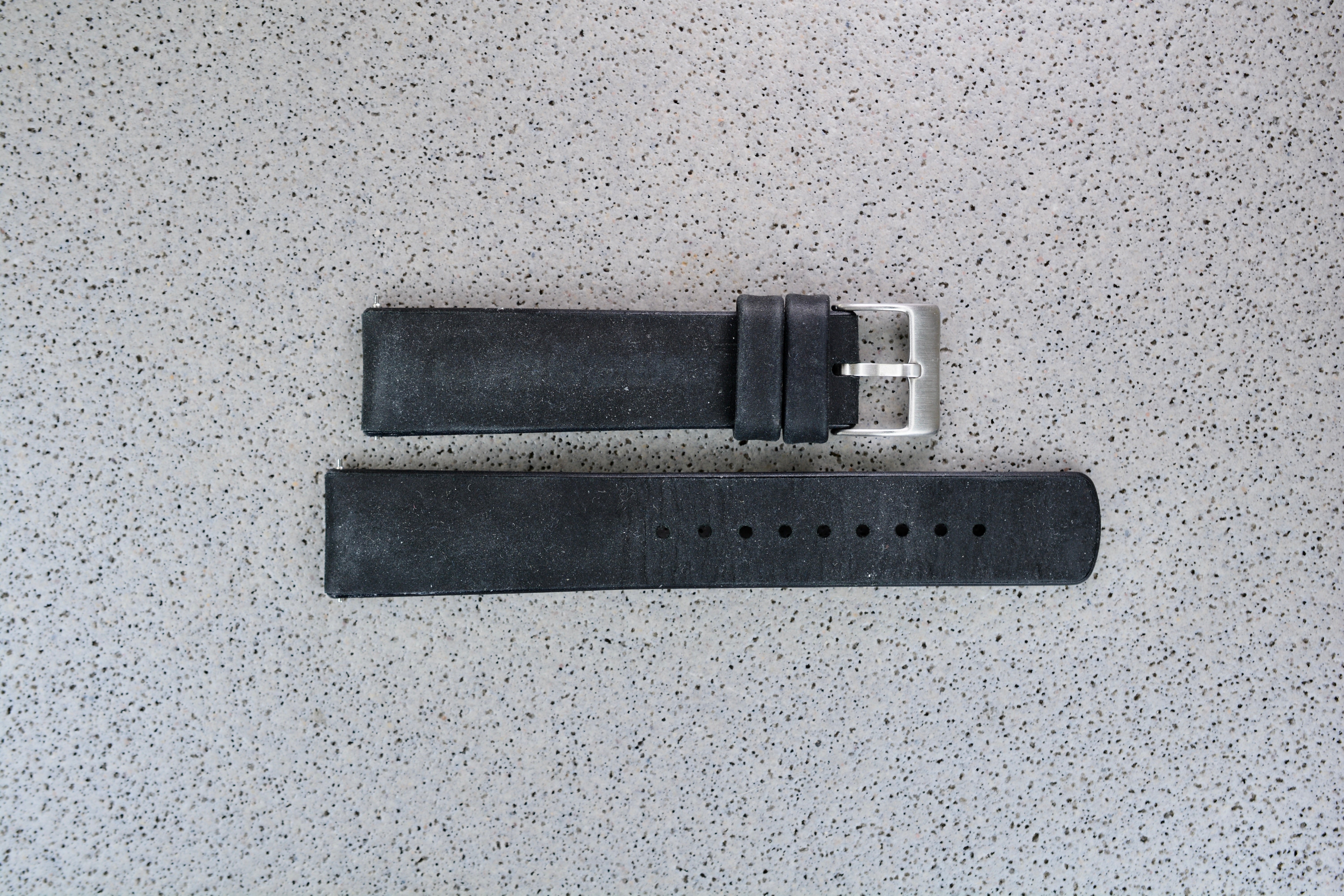 Black Leather Strap, Rubber Back, 20mm