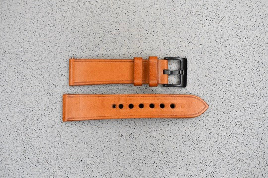 Light Brown Leather Strap + Black Hardware, 22mm