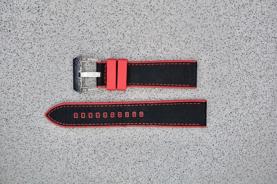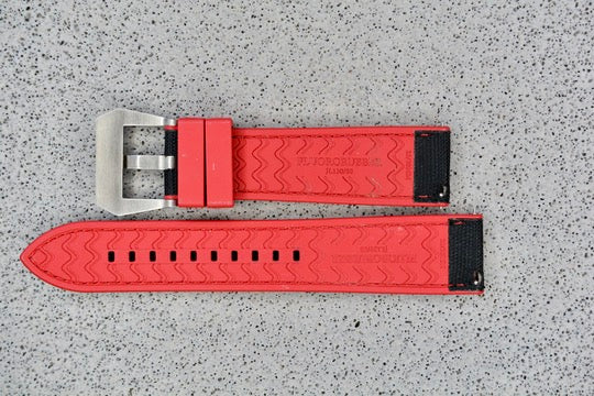 Red + Black Fluororubber Strap, 22mm