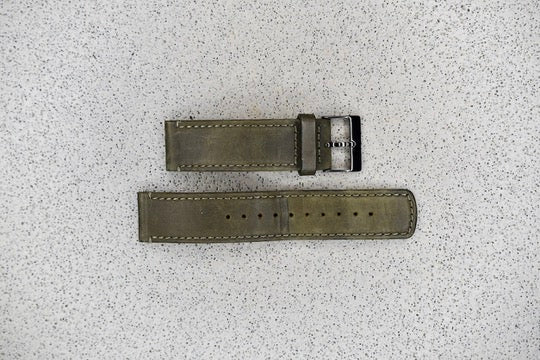 Dark Green Leather Strap + Black Hardware, 22mm