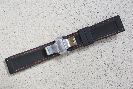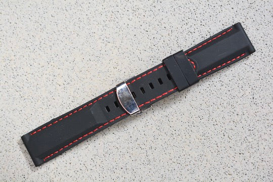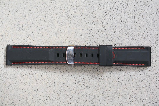 Black Rubber Strap w. Red Stitching, 22