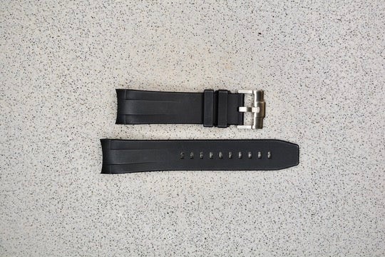 Black Rubber Dive Strap w. Curved ends, 22mm