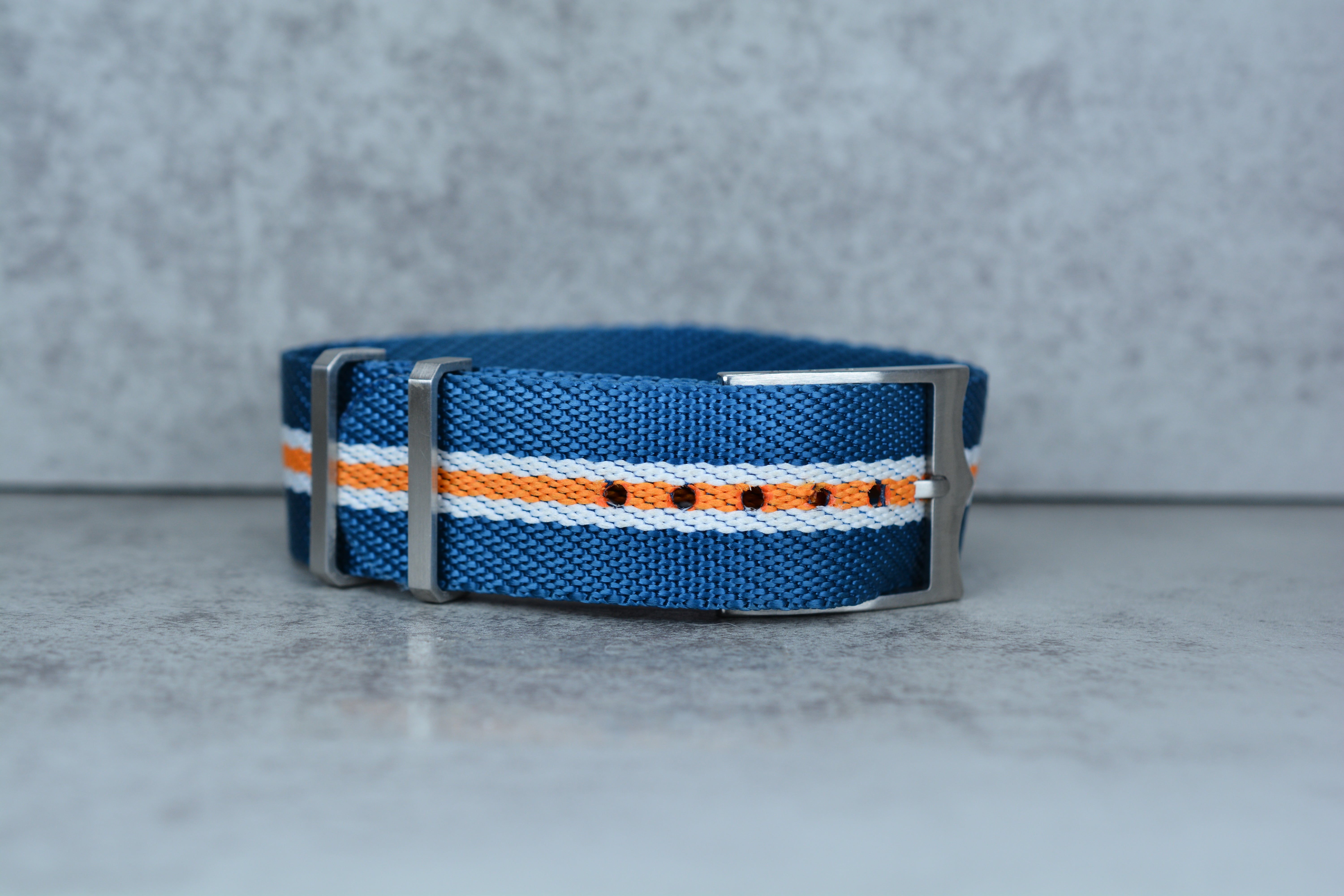 Blue, Orange, & White Nylon NATO Strap, 22mm