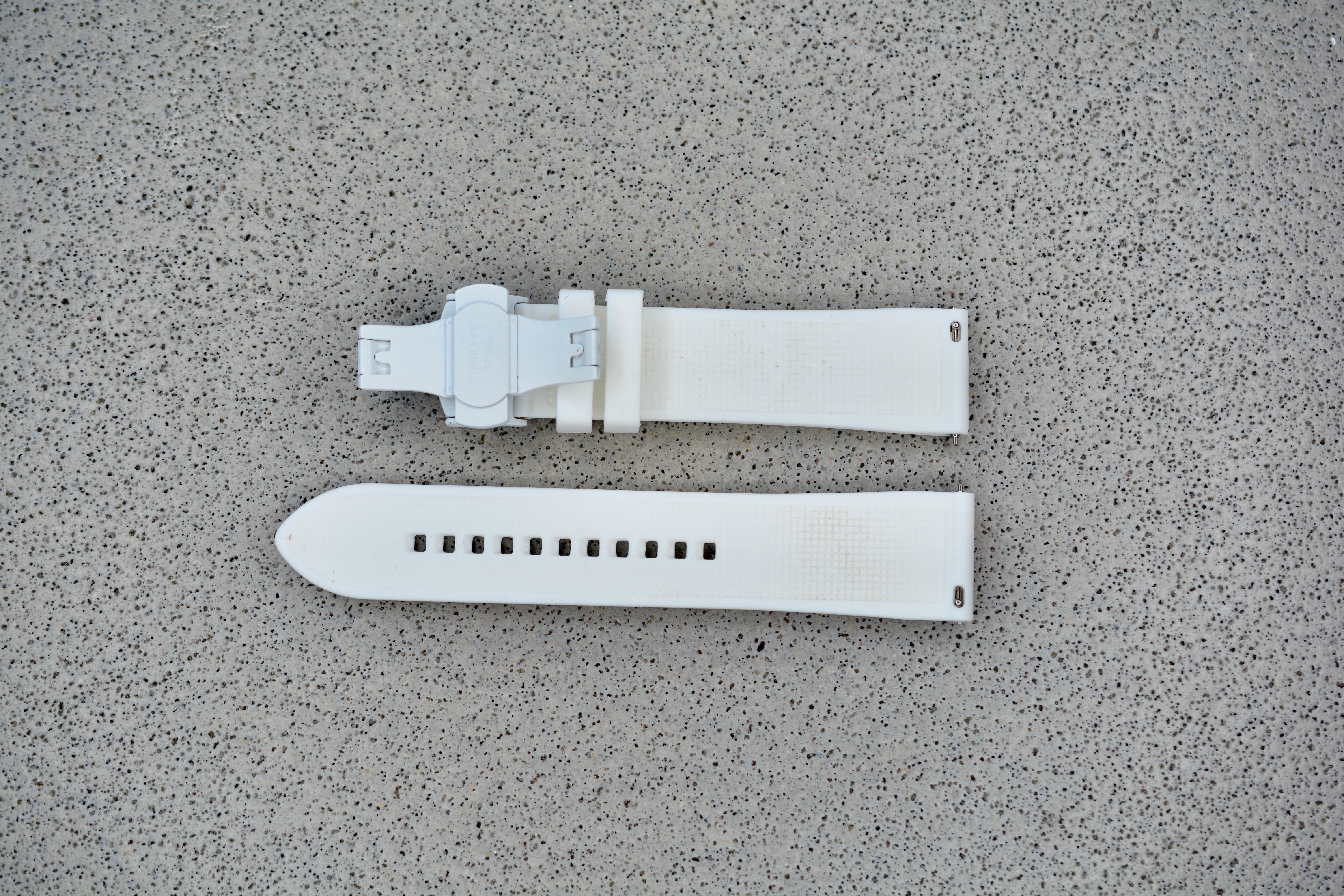 White Waffle Rubber Strap w. White Hardware, 22mm