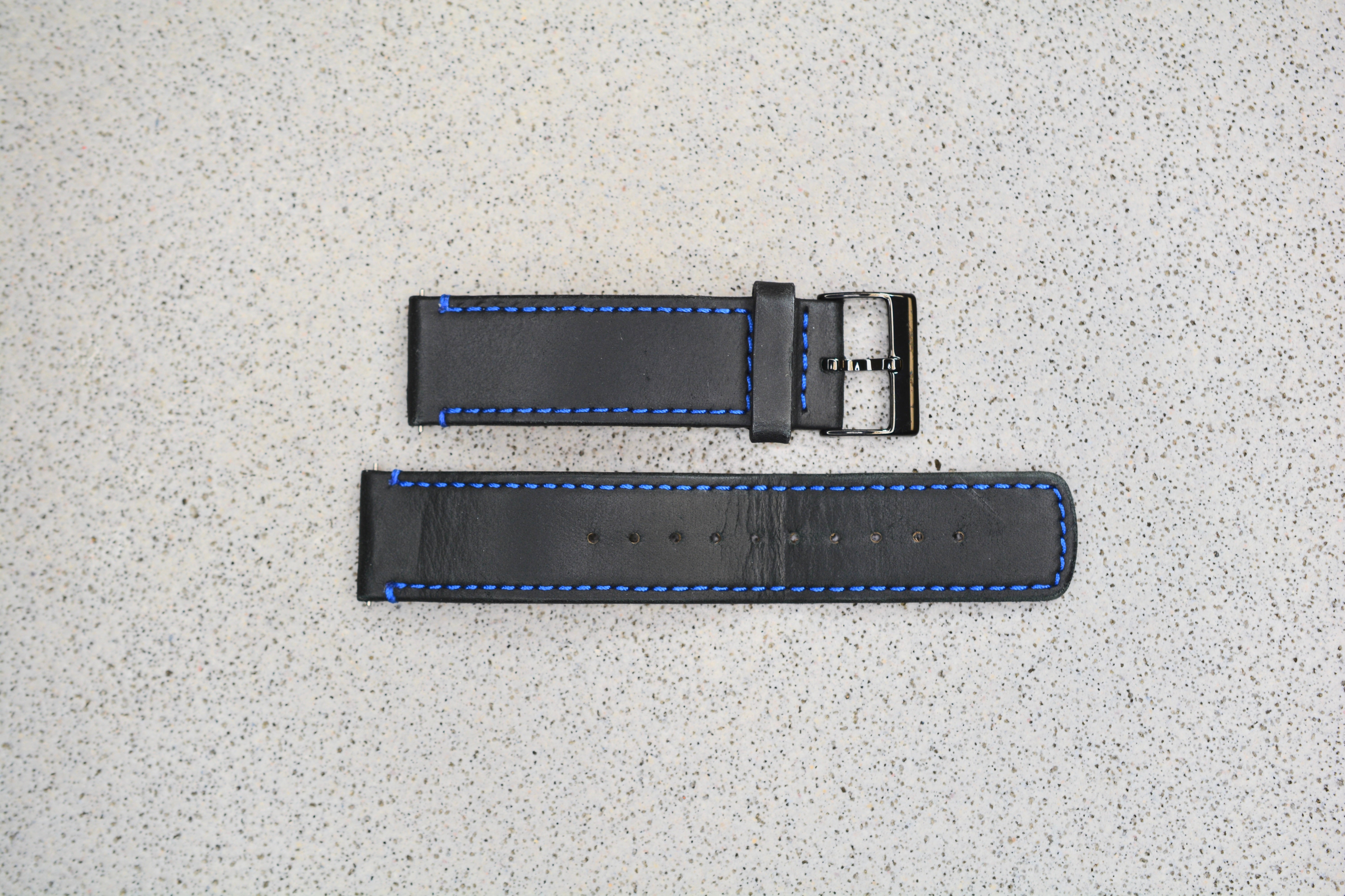 Black Leather Strap w. Blue Stitching, 22mm