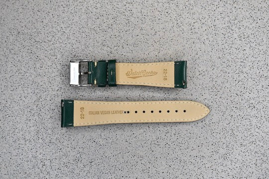 Green Padded Italian Vegan Leather Strap, 22mm