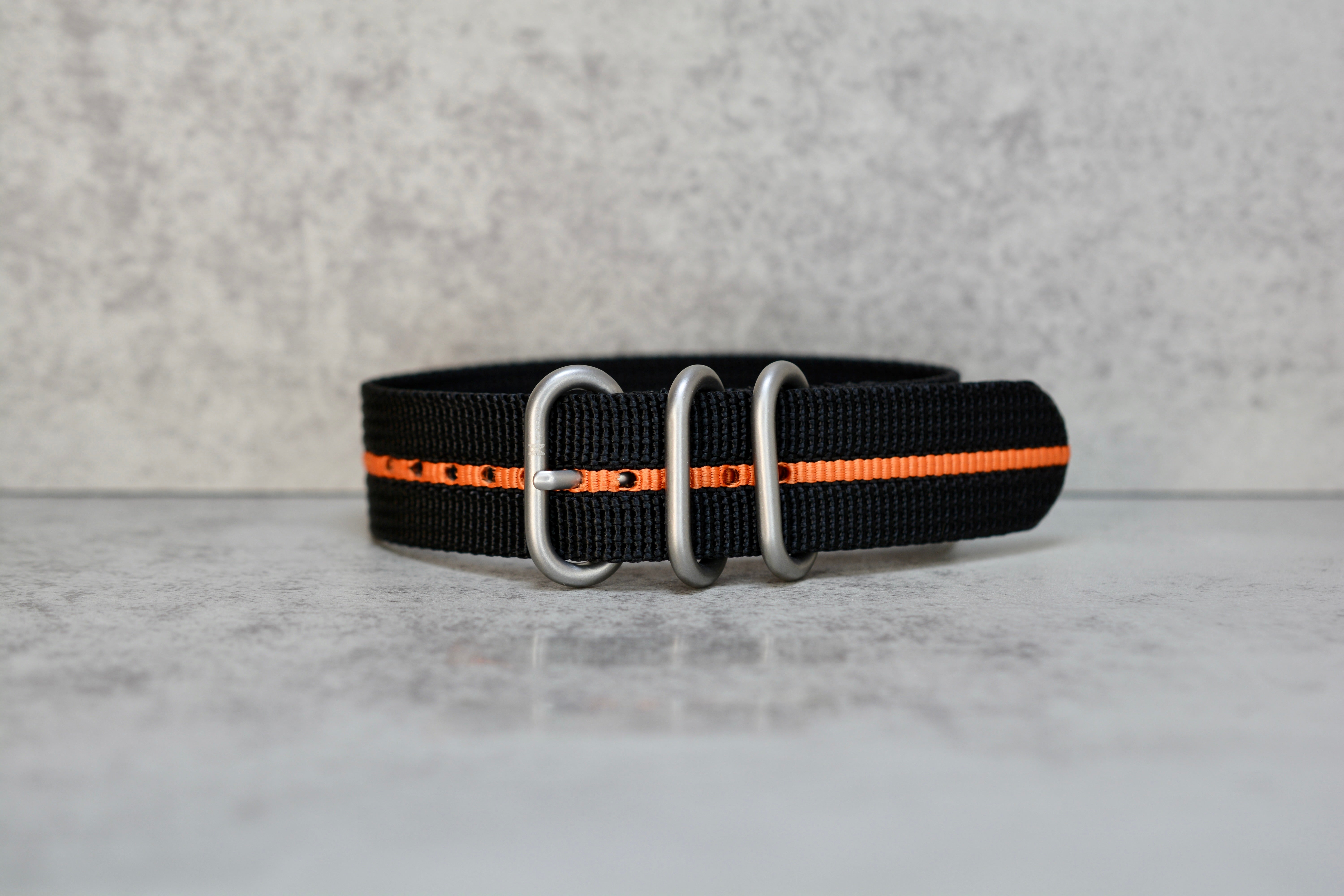 Black + Orange Stripe Single Pass Zulu Strap, 20mm - New