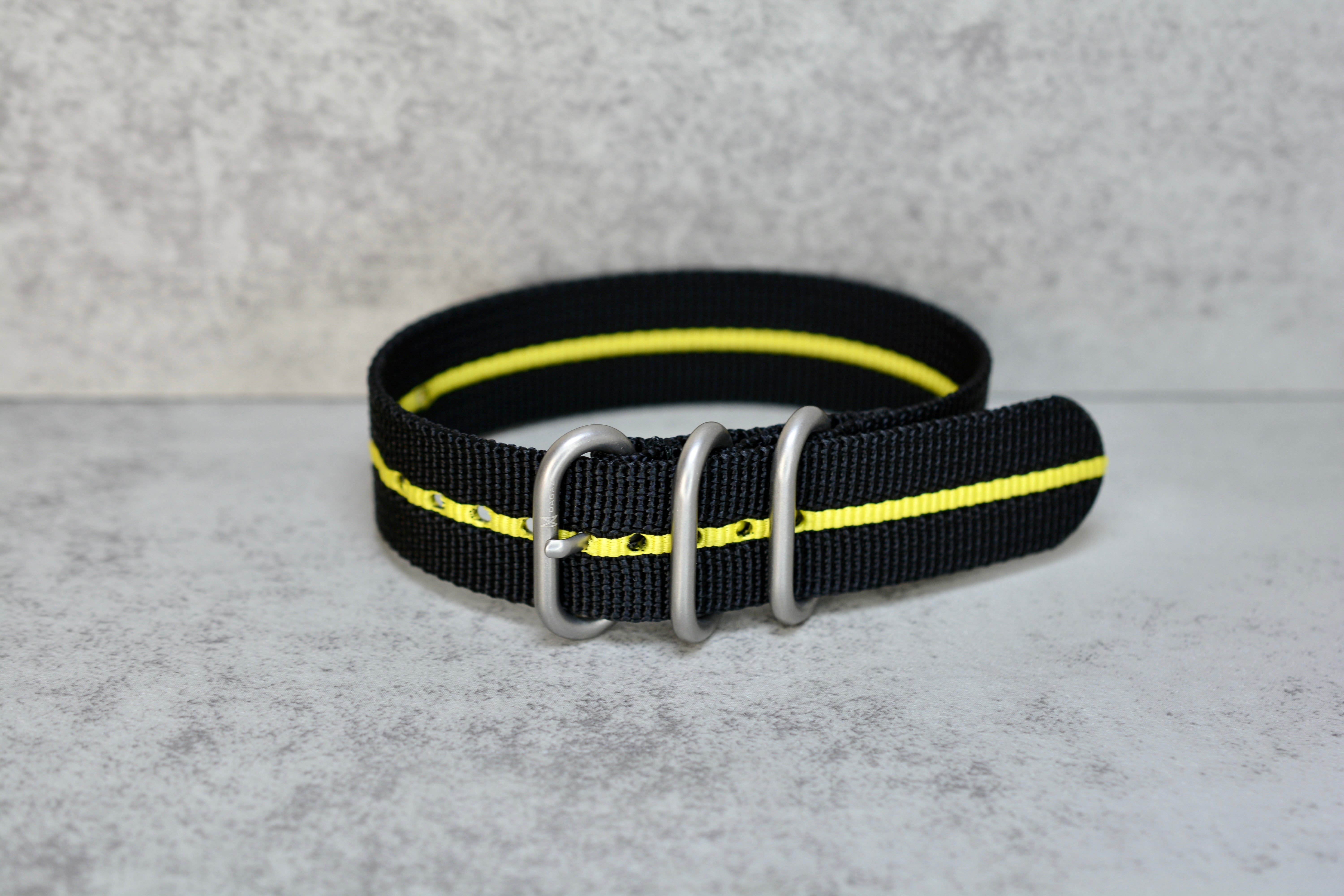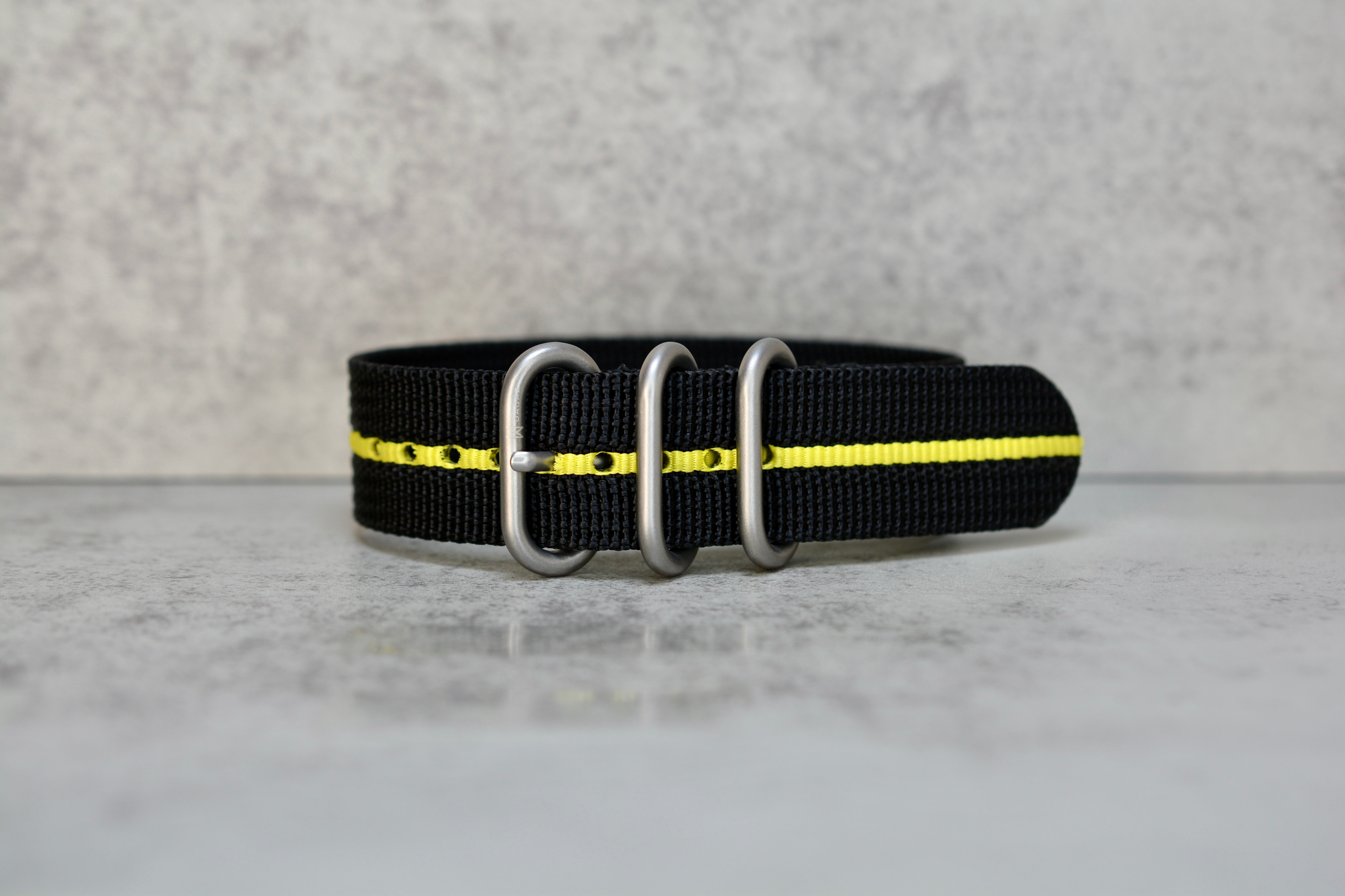 Black + Yellow Stripe Single Pass Zulu Strap, 20mm - New
