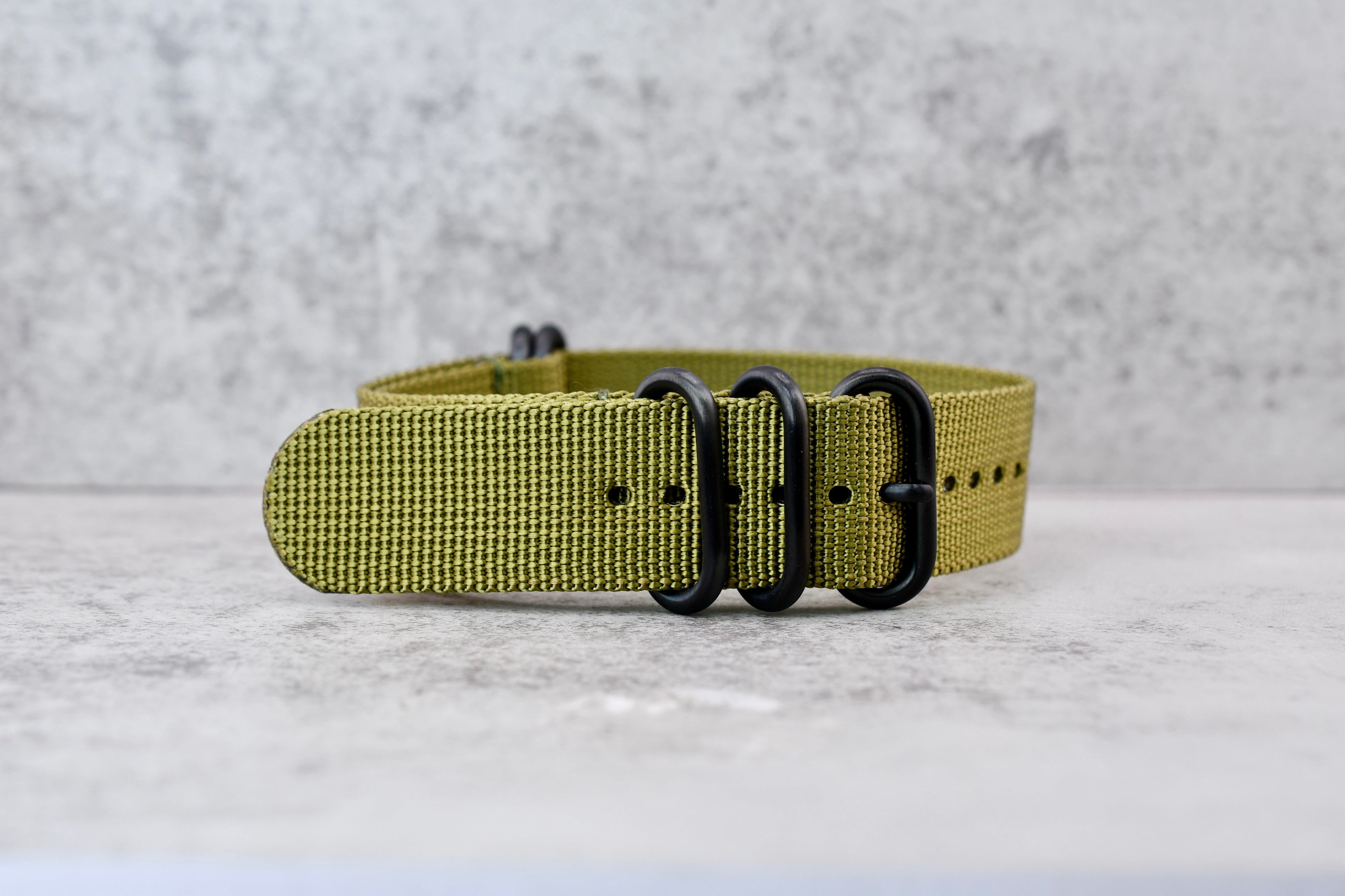 Army Green + Black Hardware Pass-Through Zulu Strap, 22mm - New