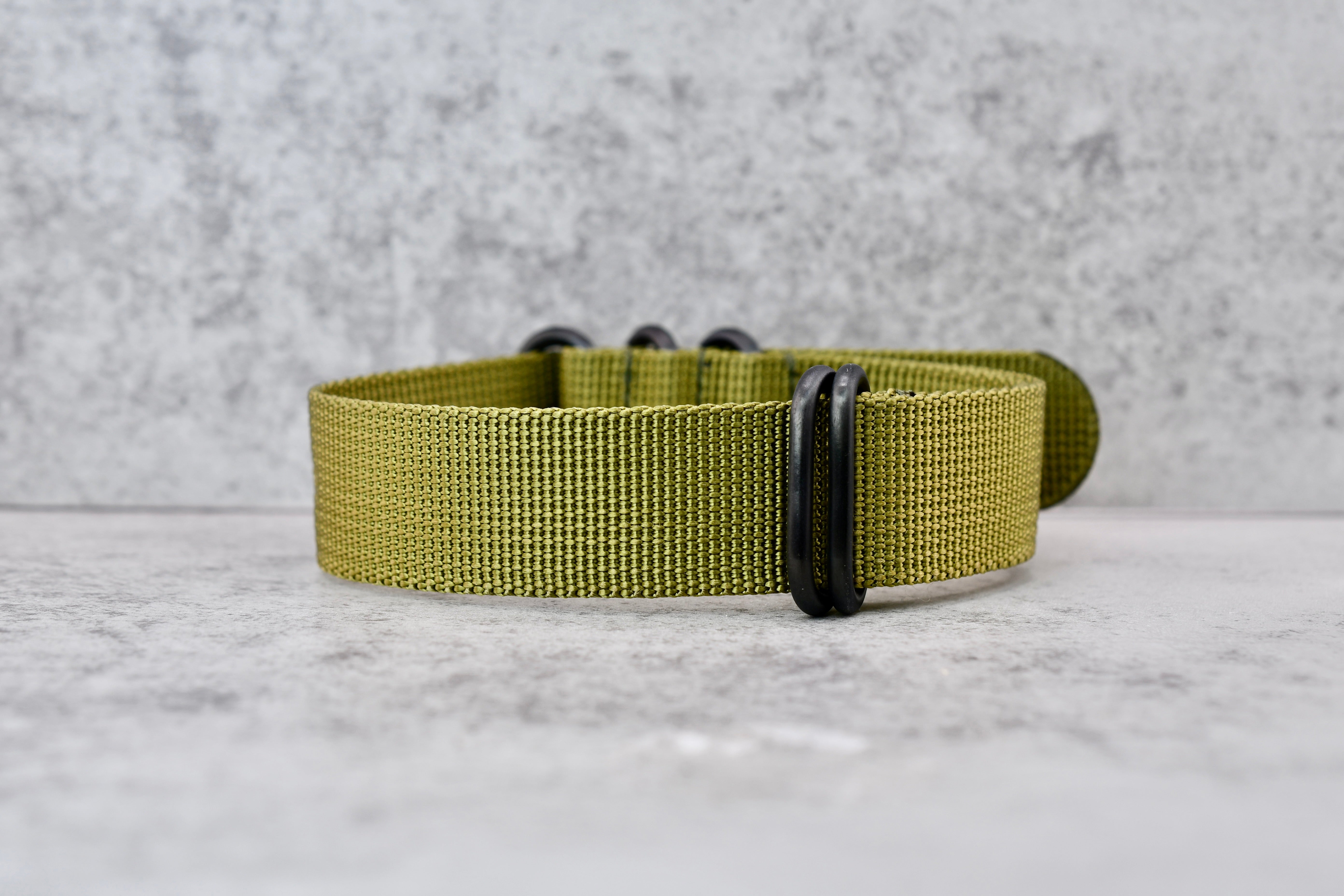 Army Green + Black Hardware Pass-Through Zulu Strap, 22mm - New