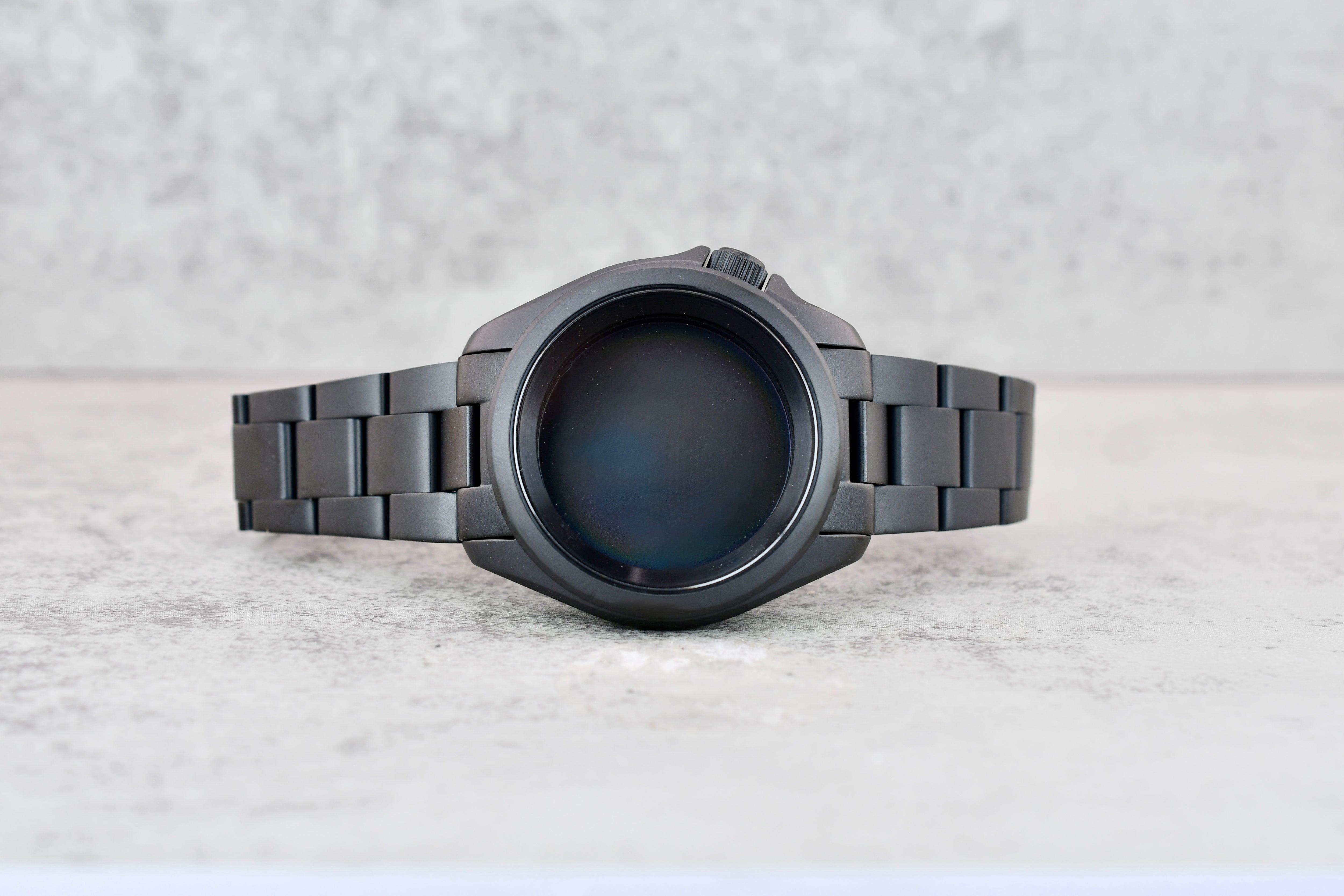 Enhanced: flat, beveled, sapphire crystal with clear AR, matte black chapter ring, matte black caseback, coin edge screw-down crown, and springbars. All you need is a movement, dial, and hands.