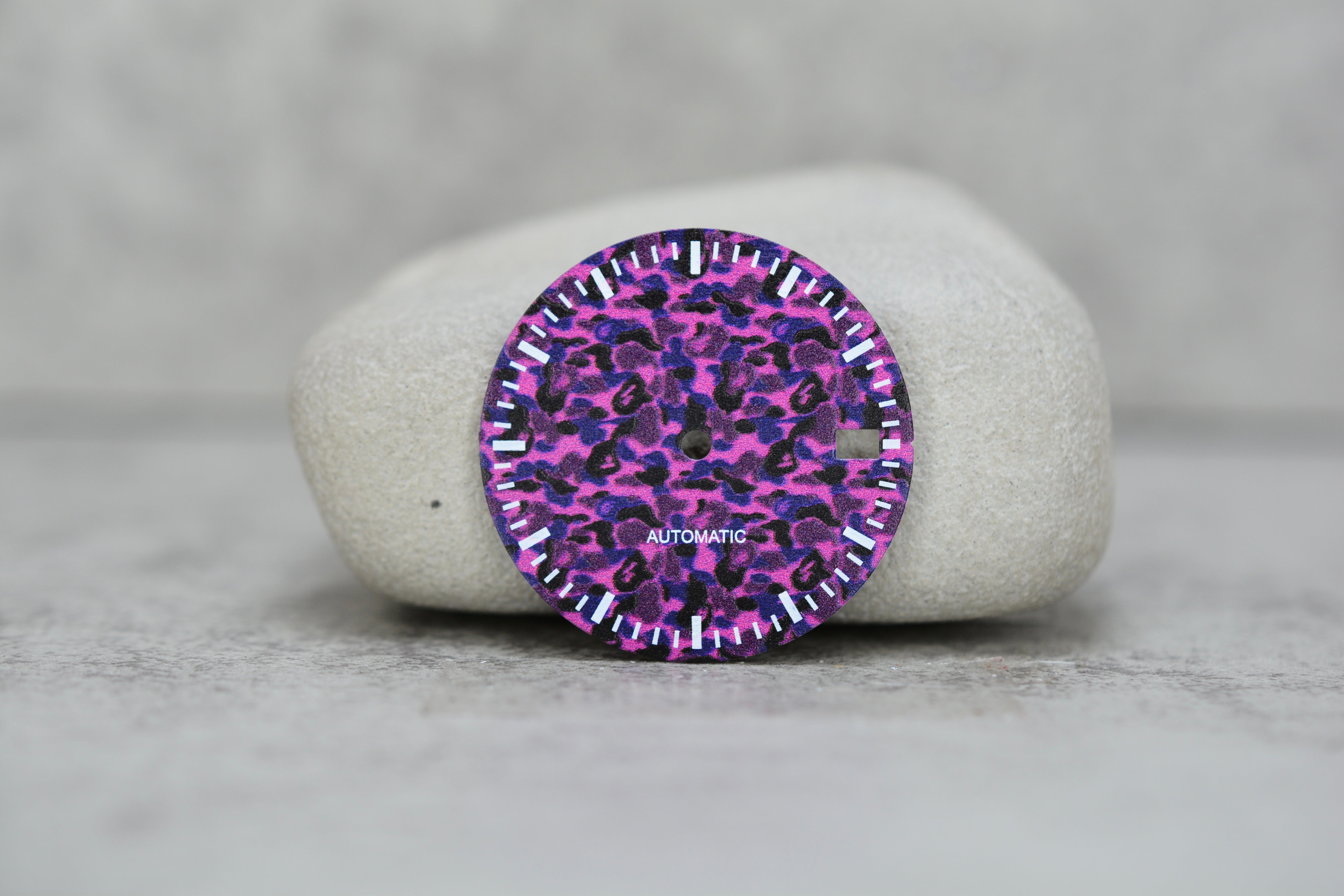 Black & Pink Static Dial w. White markers - Date only, 28.5mm