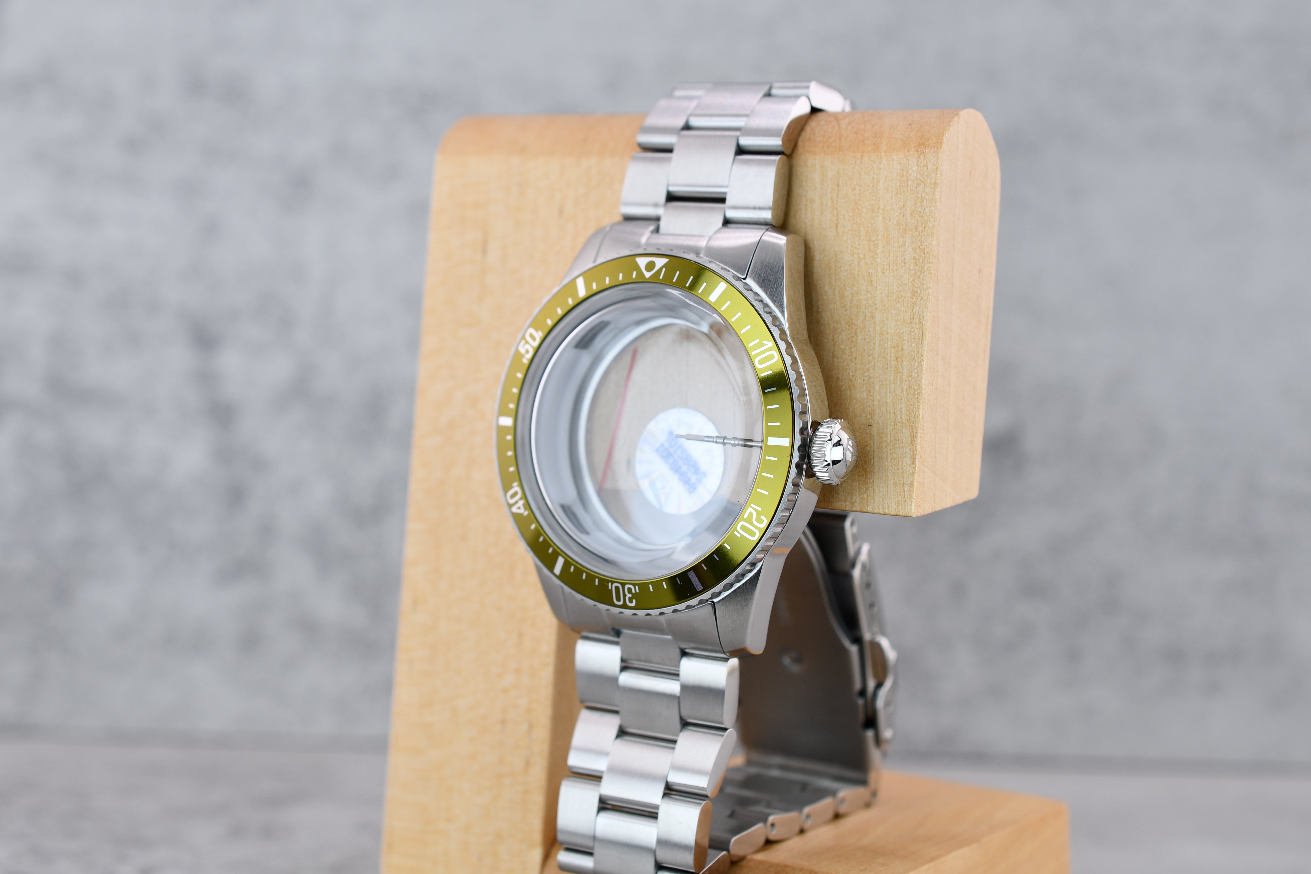 - Comes with: crystal, screw-down crown, pre-cut NH stem, bezel, insert, caseback, chapter ring, movement spacer, springbars/bracelet