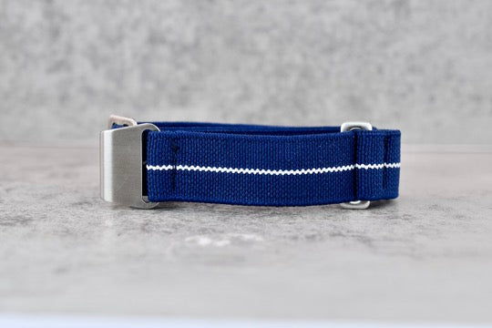 Blue Elastic Strap + White Stripe, 18mm
